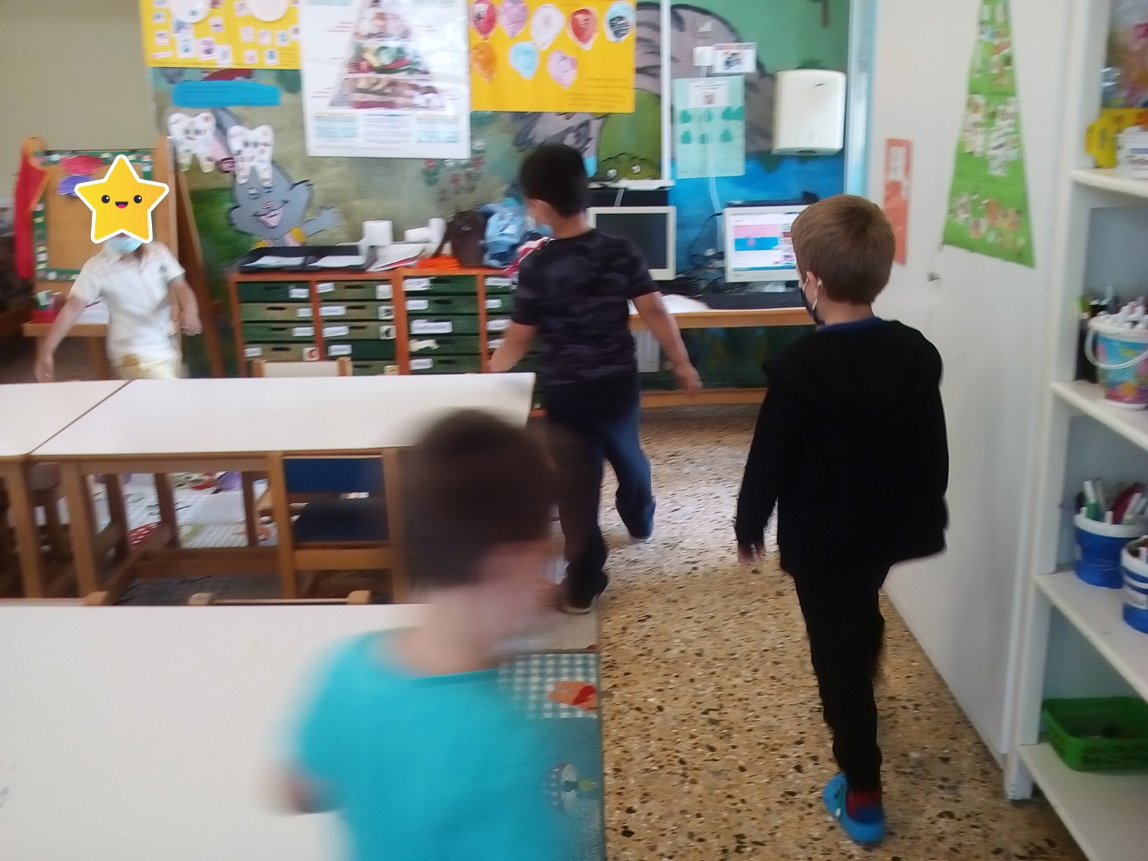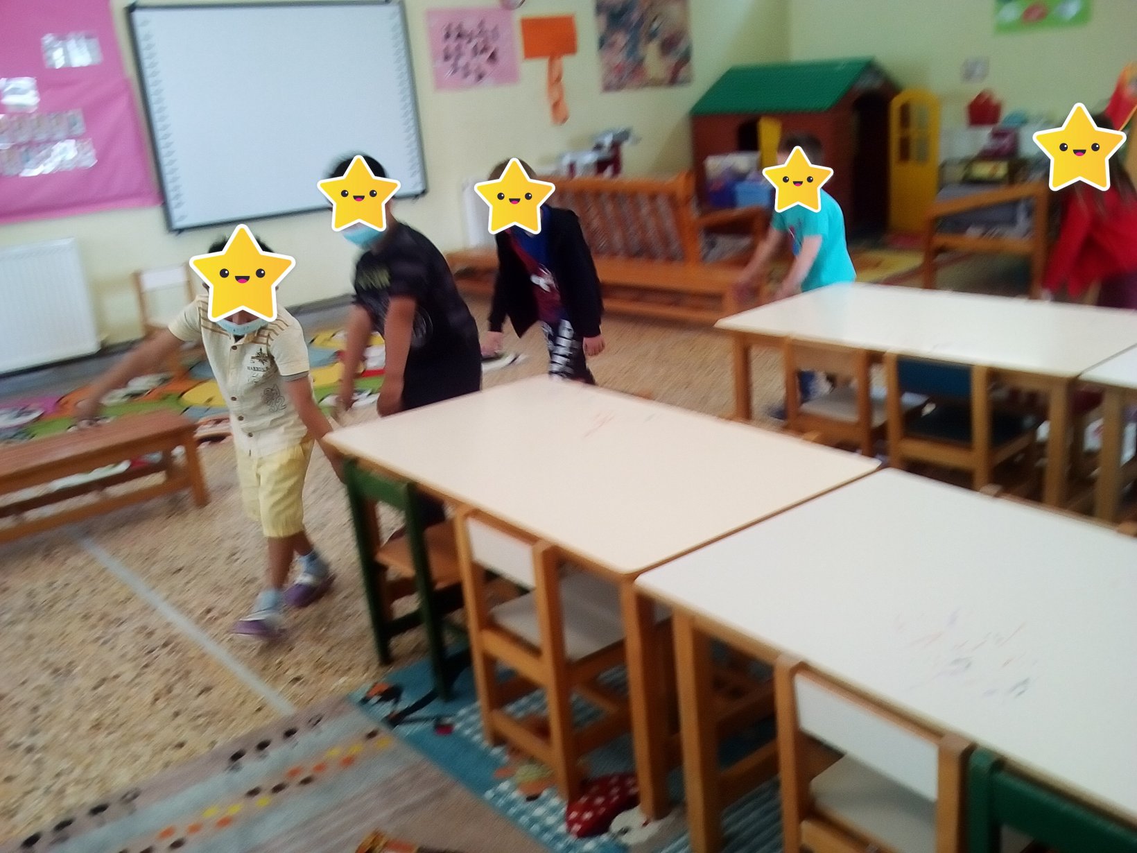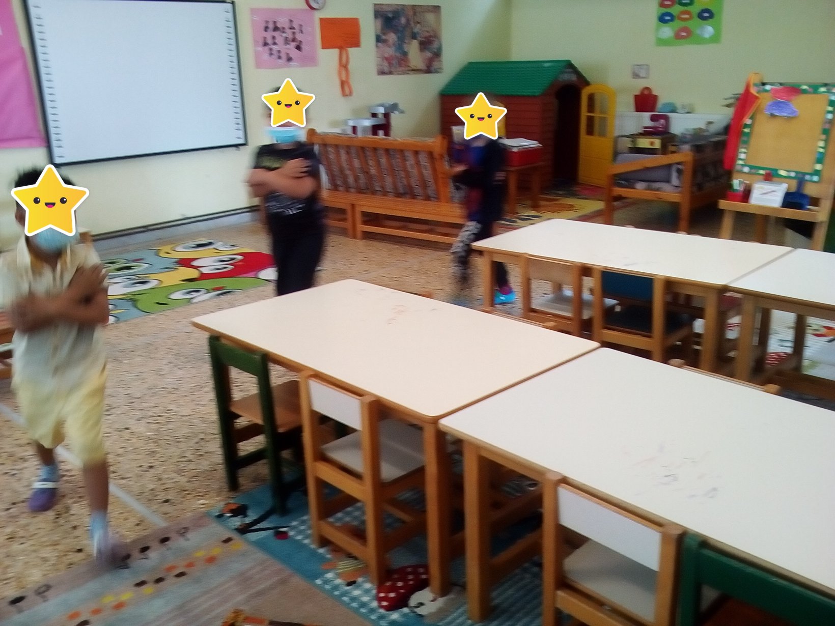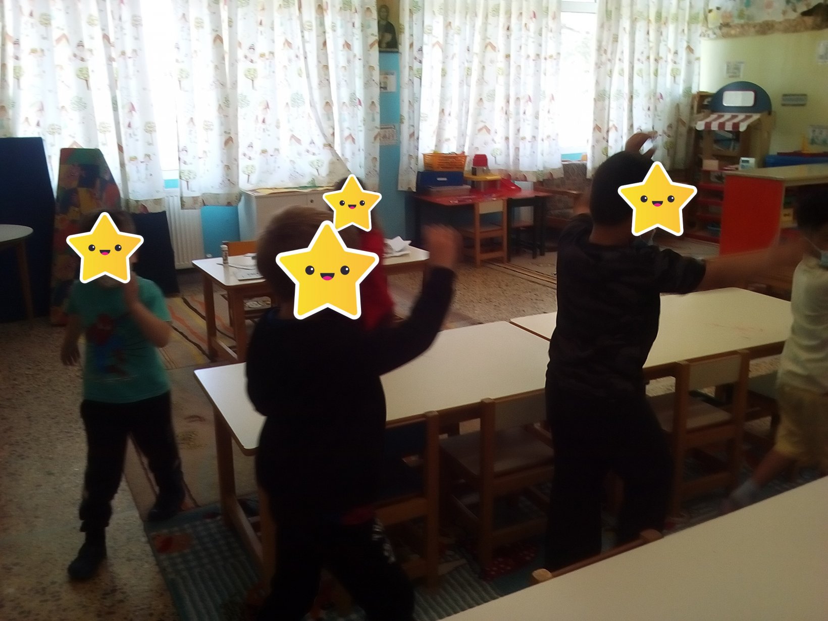 1η δραστηριότητα (Παιχνίδι ενεργοποίησης): Οι μαθητές/τριες ακούνε το τραγούδι “Βροχούλα, βροχούλα” και “Η βροχή” και στη συνέχεια τους ζητείται να χορέψουν σαν να είναι σταγόνες της βροχής. Έπειτα καλούνται να περπατήσουν σαν να είναι σταγόνες που τους παρασύρει ο αέρας, το κύμα της θάλασσας, σαν να τους ζεσταίνει ο ήλιος, σαν να είναι σταγόνες που έχουν βαρύνει κ.ά.