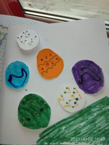 Φέτος αν και από απόσταση καταφέραμε να μπούμε στο πασχαλινό κλίμα μέσα από ιστορίες, παιχνίδια, παραμύθια …..και πολλές κατασκευές.