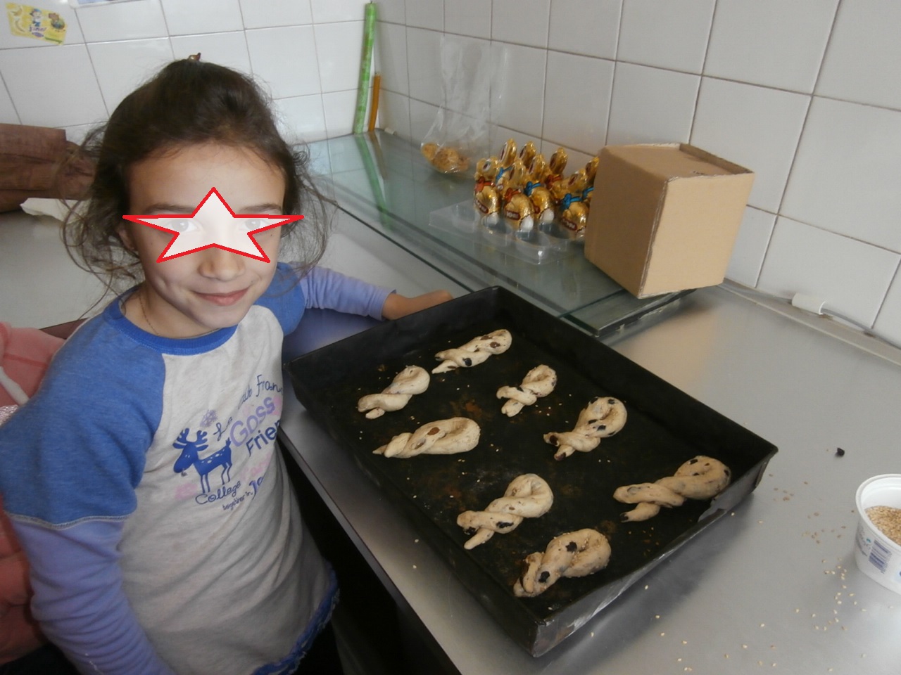 Μέσα στα πλαίσια του προγράμματος αγωγής υγείας για την διατροφή επισκεφτήκαμε λίγο πριν τις διακοπές του Πάσχα τον φούρνο στην Α. Μεριά για να ζυμώσουμε λαζαράκια