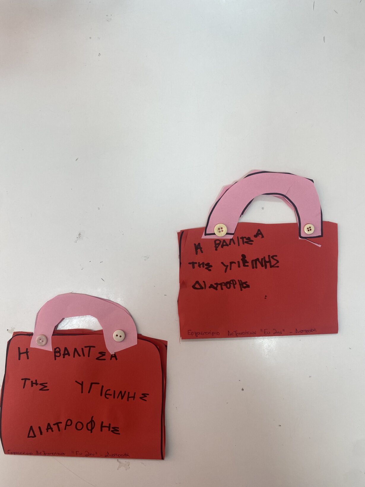 Ολοκληρώνοντας την ενότητα, δημιουργήσαμε τα βαλιτσάκια της υγιεινής διατροφής, τα οποία από εδώ και στο εξής θα μας συντροφεύουν πάντα για μία ισορροποιημένη και υγιεινή διατροφή!