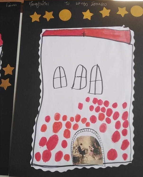 Έτσι, στο σχολείο μας μιλήσαμε για τους ήρωες της επανάστασης, για το κρυφό σχολειό και κάναμε διάφορες κατασκευές. Επίσης, τα αγόρια ντυμένα με φουστανέλα και τα κορίτσια ντυμένα με σεγκούνια έκαναν παρέλαση και κατέθεσαν στεφάνι στο άγαλμα του Γεώργιου Καραϊσκάκη, του τοπικού μας ήρωα!