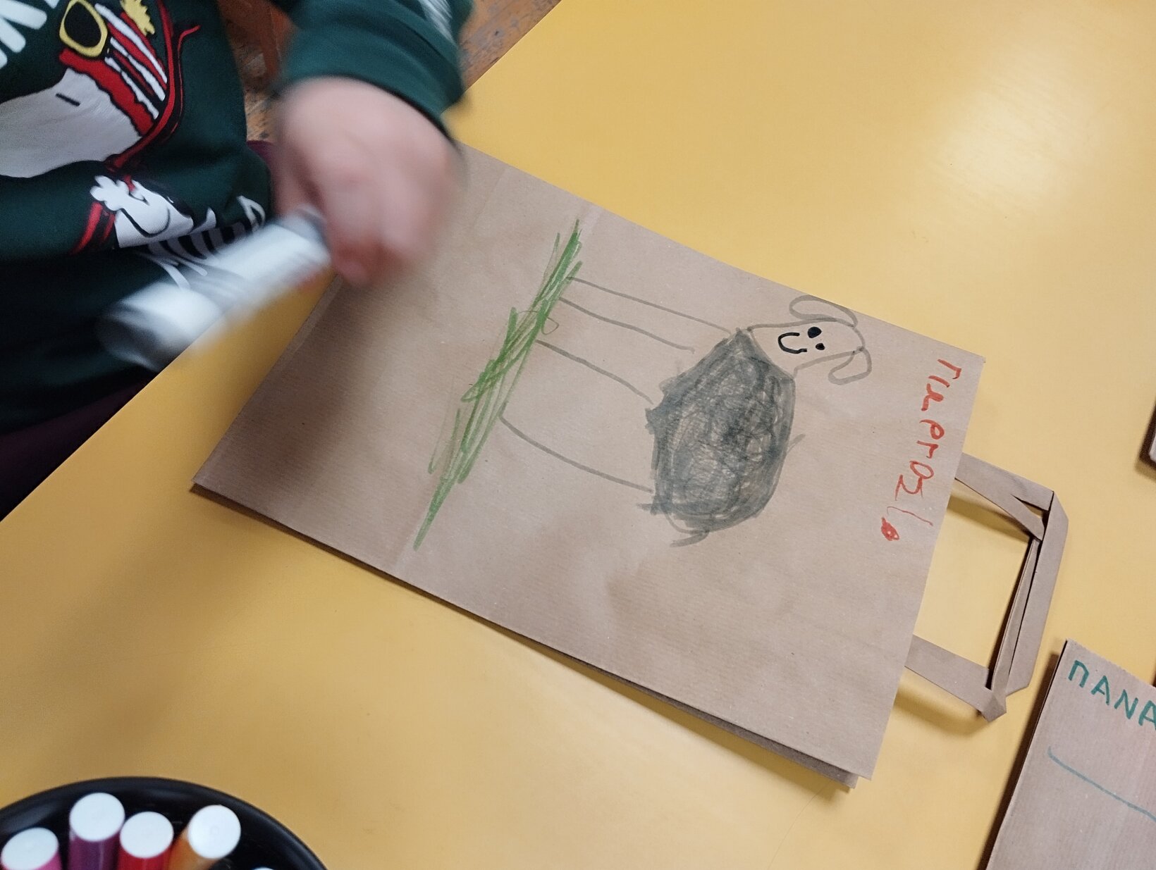 ζωγραφίσαμε τις σακούλες με τις πασχαλινές μας κατασκευές