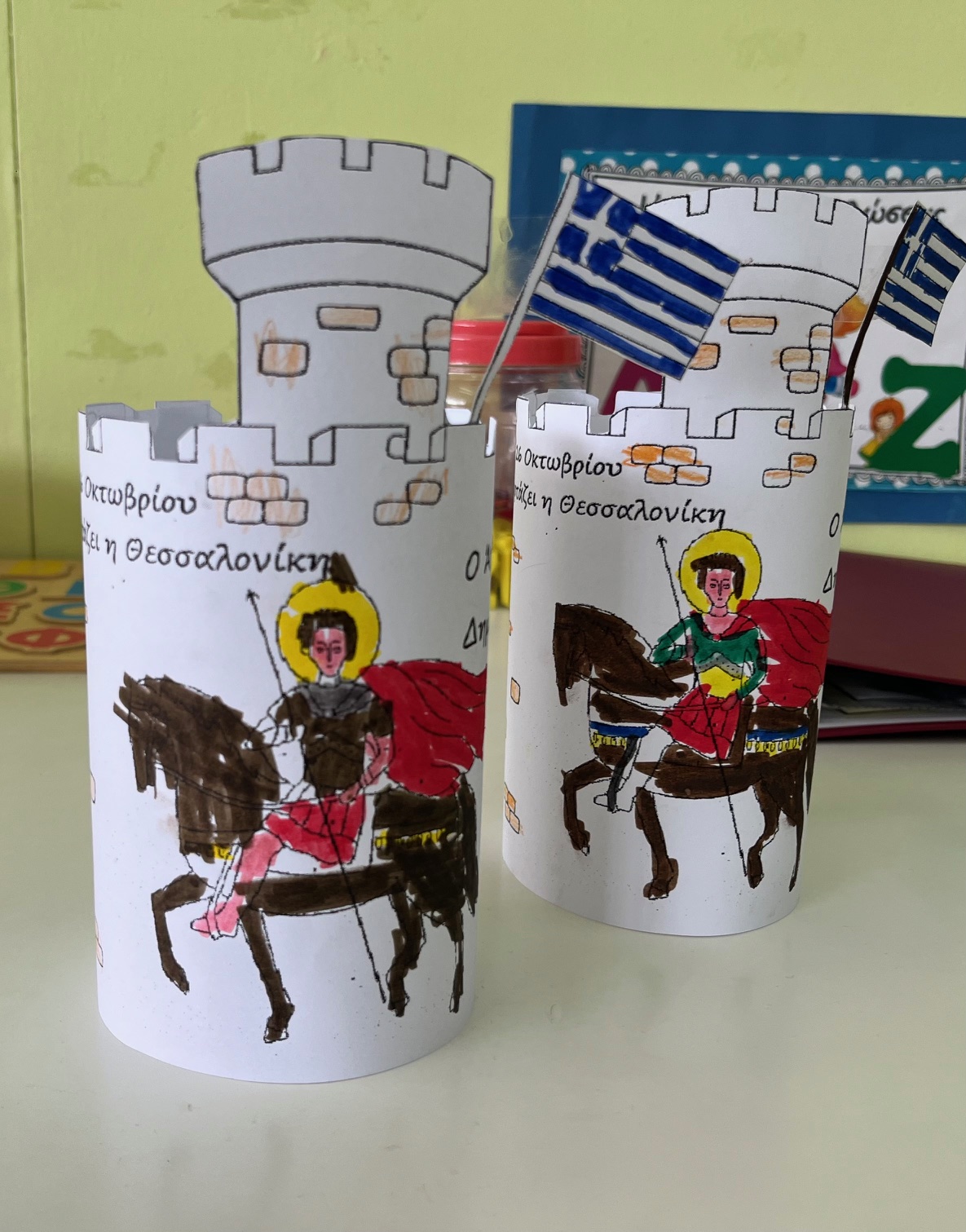 Μια μέρα πριν την παραμονή της εθνικής μας εορτής τιμήσαμε τη γιορτή του Αγίου Δημητρίου, προστάτη της Θεσσαλονίκης, μιλήσαμε για τον βίο του και δημιουργήσαμε μια κατασκευή προς τιμήν του.