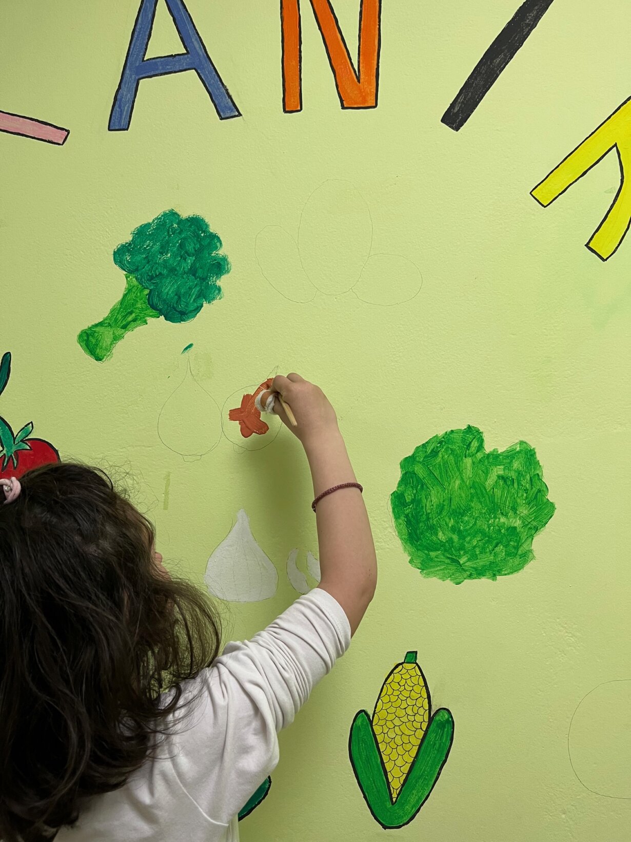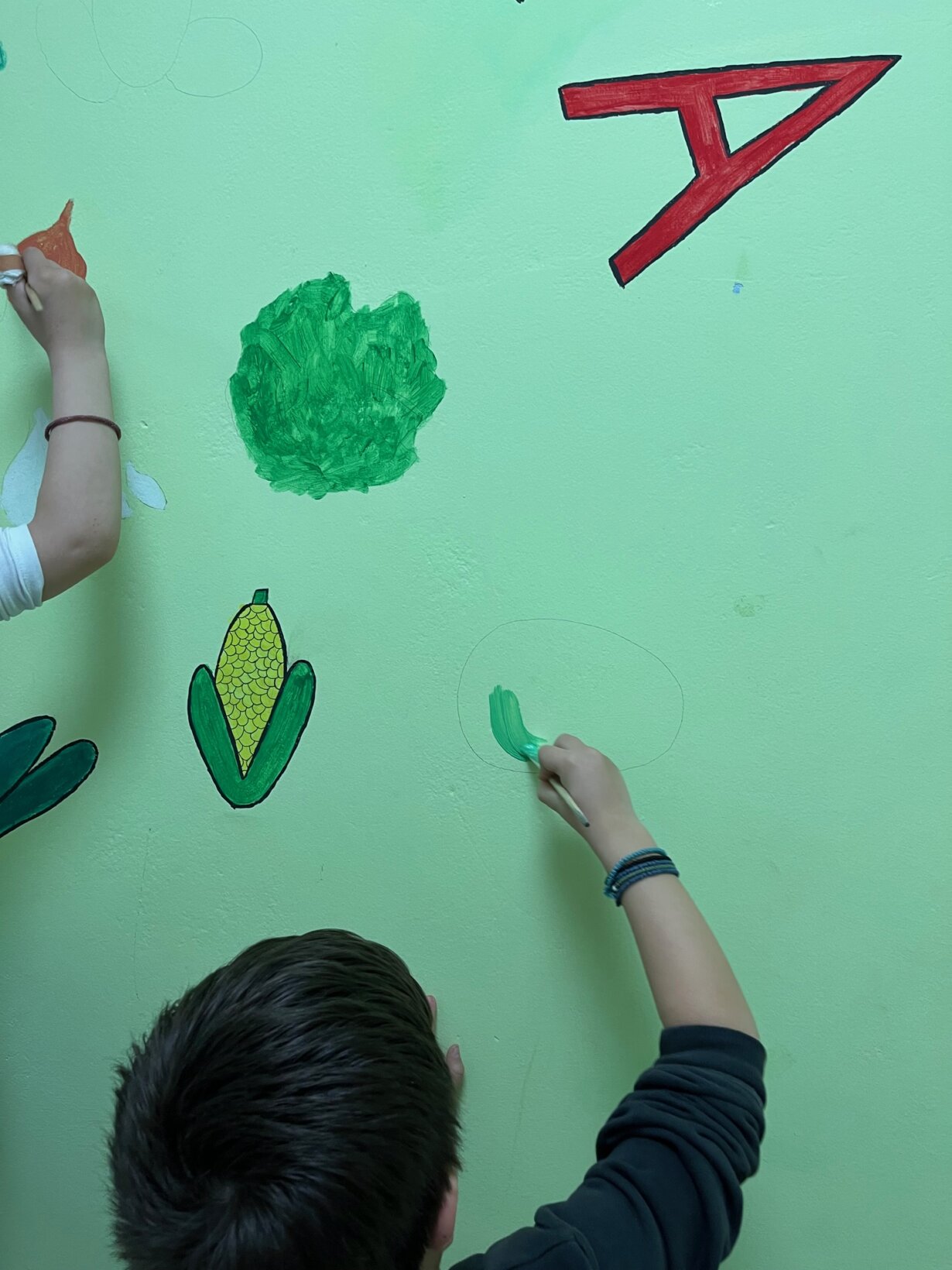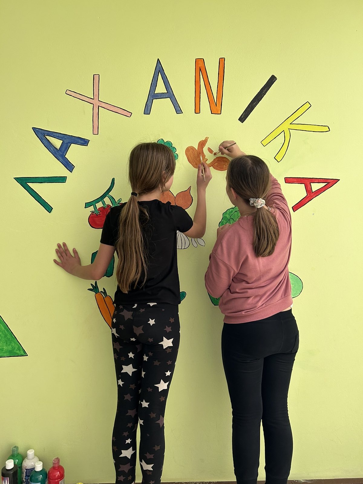 Αυτό μας γέννησε την ιδέα, να αποτυπώσουμε την διατροφική πυραμίδα και κάπου που θα την βλέπουν όλοι. Οι τοίχοι του σχολείου μας γέμισαν με υγιεινές τροφές όπως φρούτα και λαχανικά και μια μεγάλη πυραμίδα διατροφής ζωγραφισμένη όλη στο χέρι. Σε αυτό βοήθησε και η συνεργασία με το συστεγαζόμενο Δημοτικό Σχολείο Αραχναίου όπου από την πρώτη στιγμή υπήρξε θετικά προσκείμενο να συνεργαστεί μαζί μας. Έτσι έγινε πραγματικότητα μια αλλαγή που προήλθε από τους ίδιους τους μαθητές και κοσμεί πλέον τους σχολικούς τοίχους για να μας θυμίζει όσα είναι σωστά για την υγεία μας.