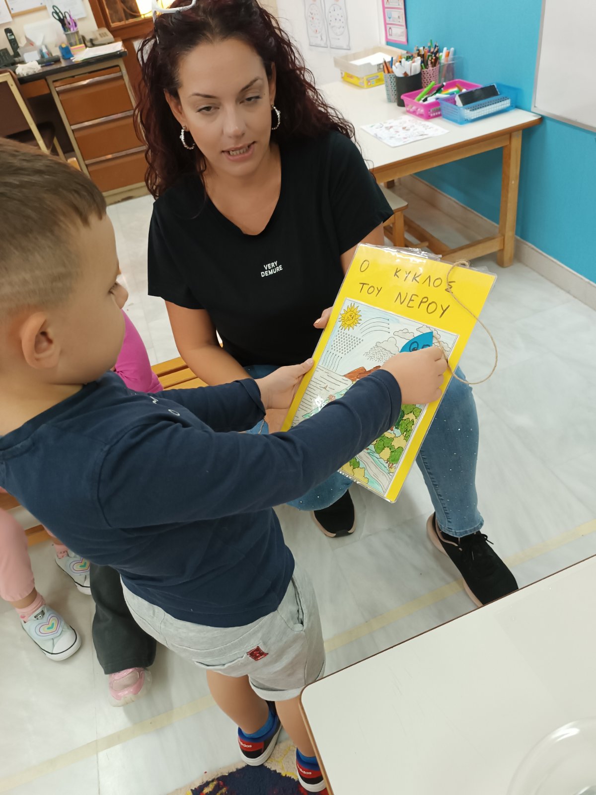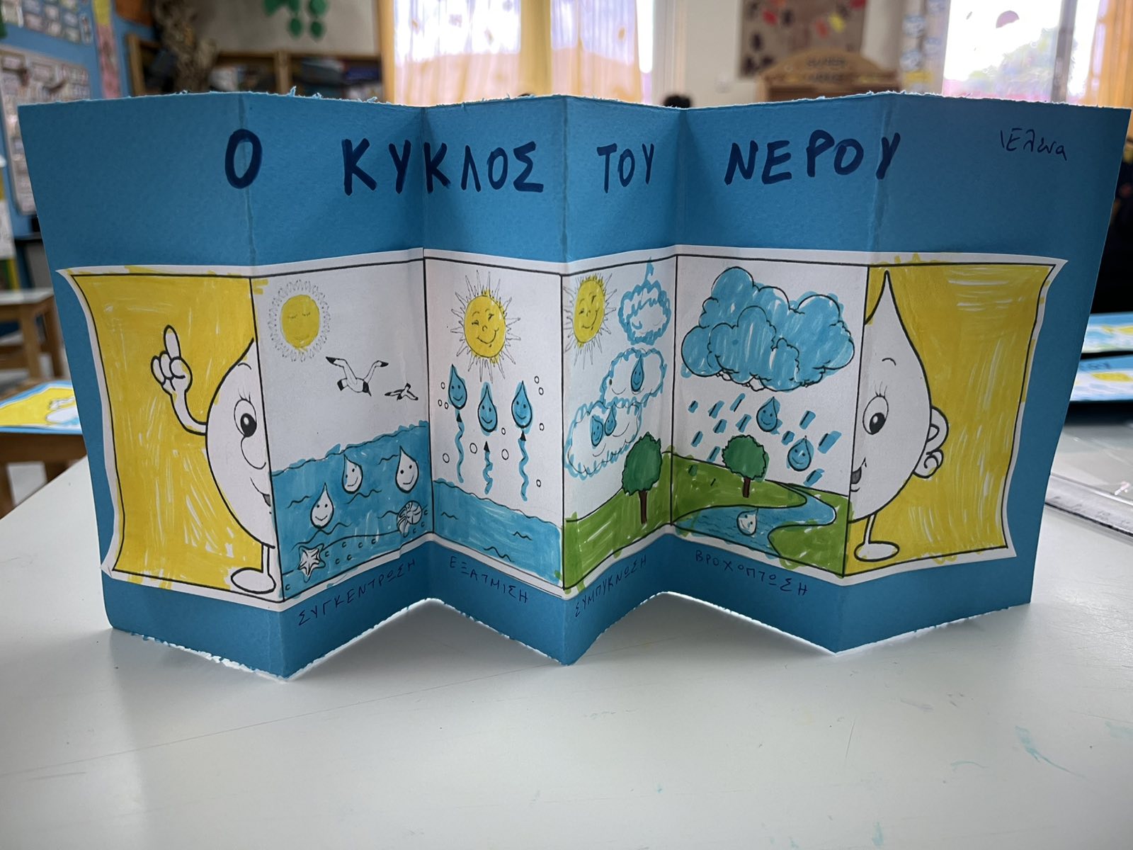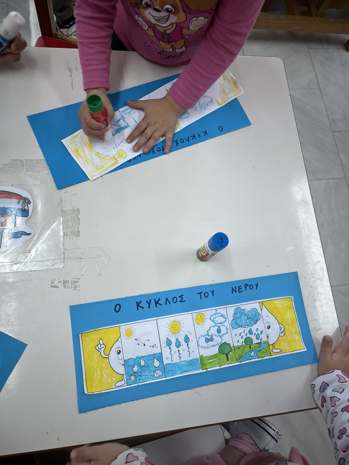 Πειράματα, βιβλία, βίντεο, τραγούδια, ζωγραφιές, κατασκευές…. όλα μας βοήθησαν για να καταλάβουμε και να κατανοήσουμε τον κύκλο του νερού ( Συγκέντρωση, Εξάτμιση, Συμπύκνωση, Βροχόπτωση) και τις μορφές του νερού ( Στερεό, Υγρό , Αέριο)