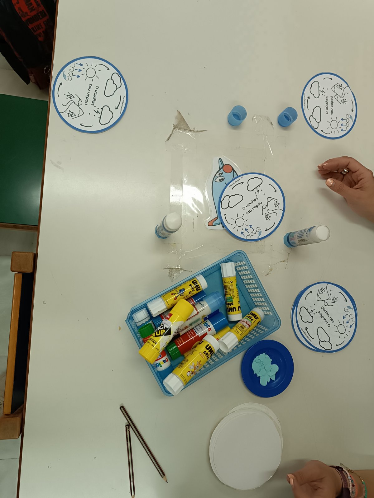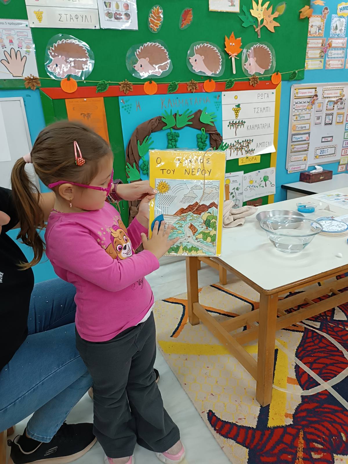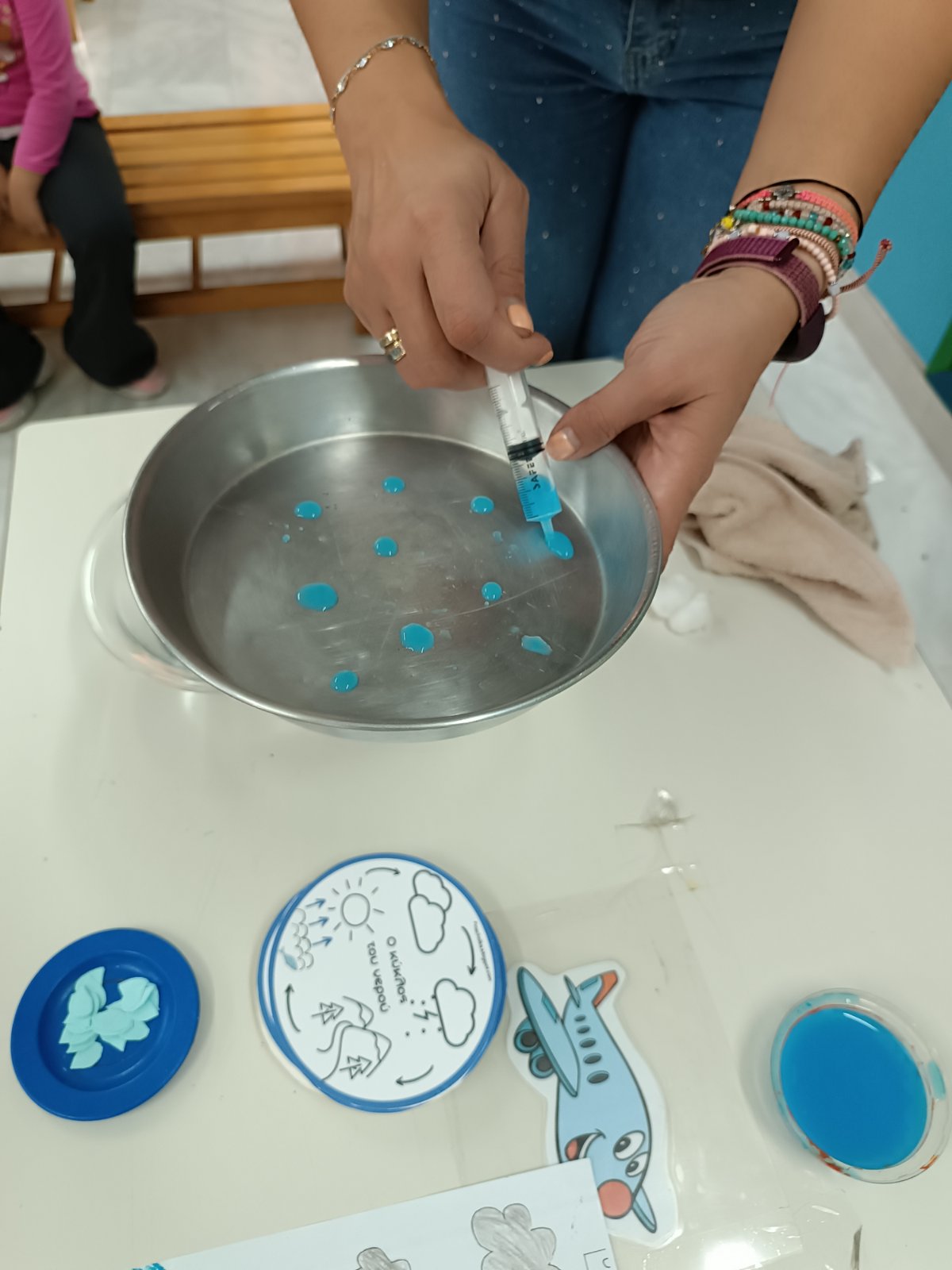Πειράματα, βιβλία, βίντεο, τραγούδια, ζωγραφιές, κατασκευές…. όλα μας βοήθησαν για να καταλάβουμε και να κατανοήσουμε τον κύκλο του νερού ( Συγκέντρωση, Εξάτμιση, Συμπύκνωση, Βροχόπτωση) και τις μορφές του νερού ( Στερεό, Υγρό , Αέριο)