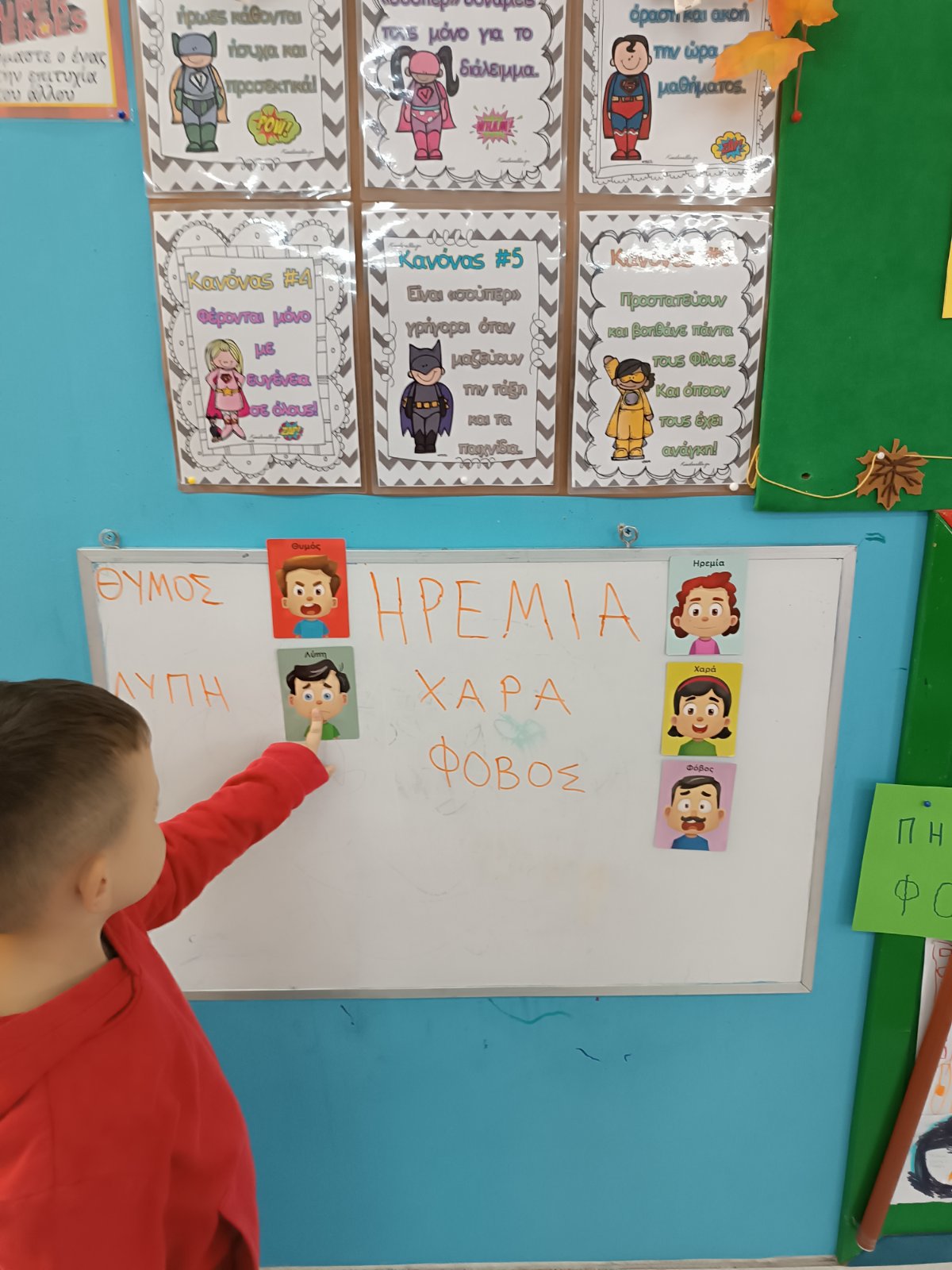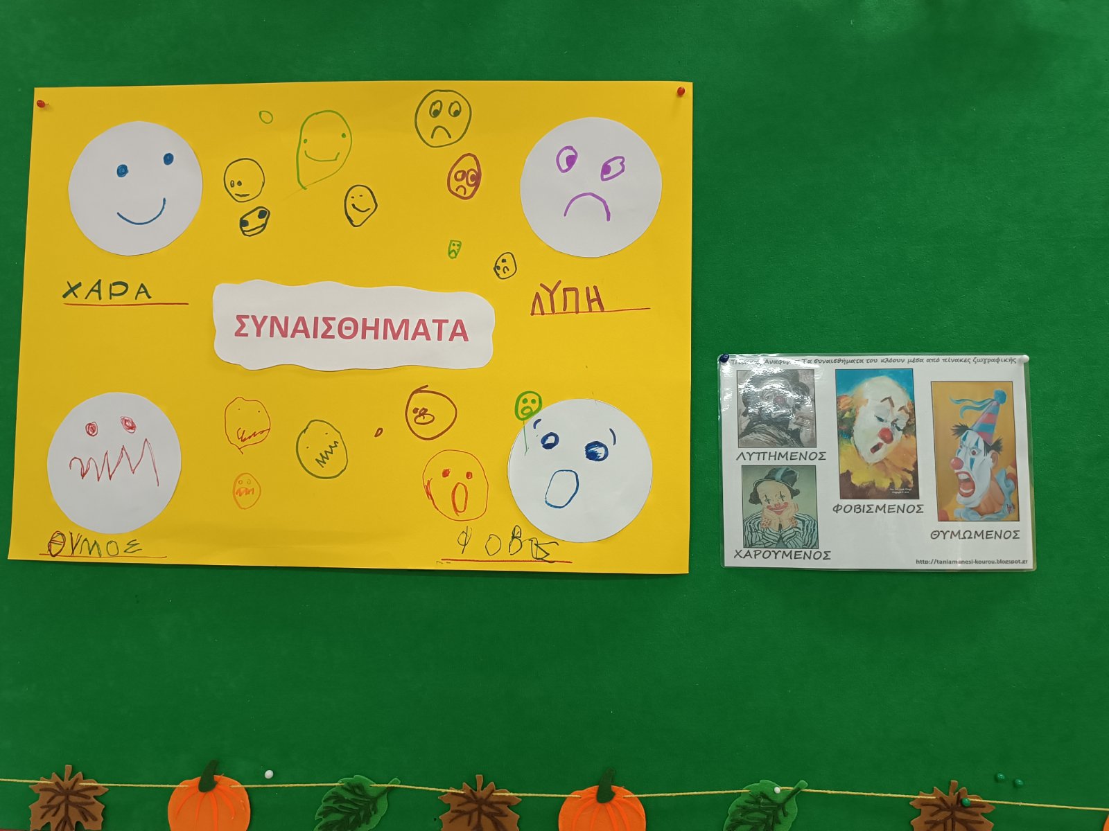 Συναισθήματα που βιώνουμε όλοι….. σε μικρότερο ή μεγαλύτερο βαθμό!! Αναγνωρίσαμε τα συναισθήματά μας και μάθαμε τεχνικές για να ελέγχουμε την έκφραση και την ένταση των συναισθημάτων μας !!! Ο φίλος μας ο κλόουν μας βοήθησε πολύ σε αυτό. Φτιάξαμε το δικό μας μπουκάλι ηρεμίας. Παίξαμε παιχνίδια κατανόησης και αναγνώρισης συναισθημάτων. Ζωγραφίσαμε τους φόβους μας και τους πετάξαμε στο πηγάδι του φόβου! Φτιάξαμε το δέντρο των ωραίων συναισθημάτων! Και συνεχίζουμε χαρούμενοι και ευτυχισμένοι!!!!