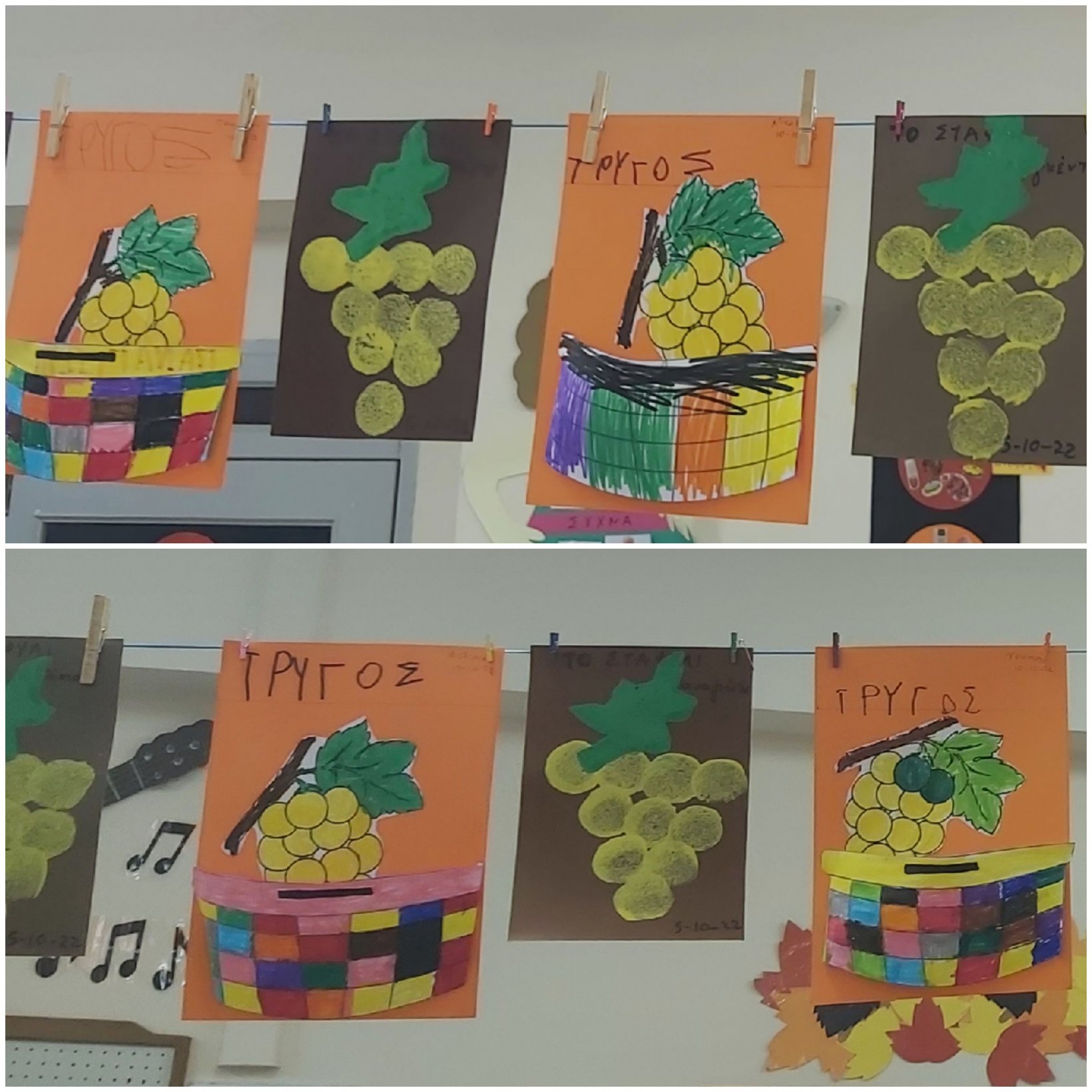 Η κληματαριά!!!! Ομαδική εργασία………Τύπωμα με σφουγγάρι!!!! Όσα δε φτάνει η αλεπού, τα κάνει κρεμαστάρια……..