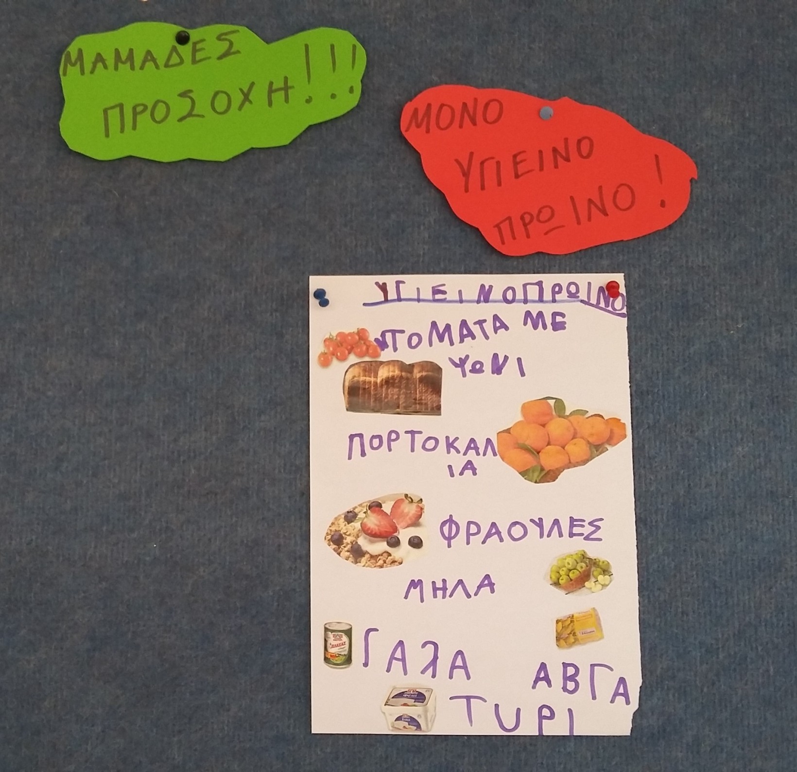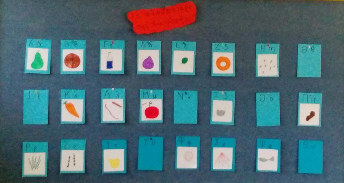 Στα πλαίσια της θεματικής ενότητας “Διατροφή” , αρχικά οι μαθητές μας έμαθαν για την υγιεινή διατροφή, γνώρισαν την διατροφική πυραμίδα και τις κατηγορίες τροφίμων.