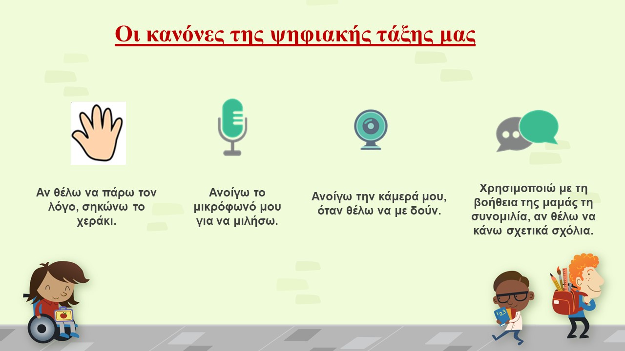 Η προσέλευση των μαθητών στο σχολείο στις 8:15 – 8:30 π.μ. θα γίνει από την είσοδο που έχει προσδιοριστεί, συρρόμενη αυλόπορτα του Δημοτικού Σχολείου, φορώντας μάσκα και με την επίδειξη του αυτοδιαγνωστικού τεστ (self test).