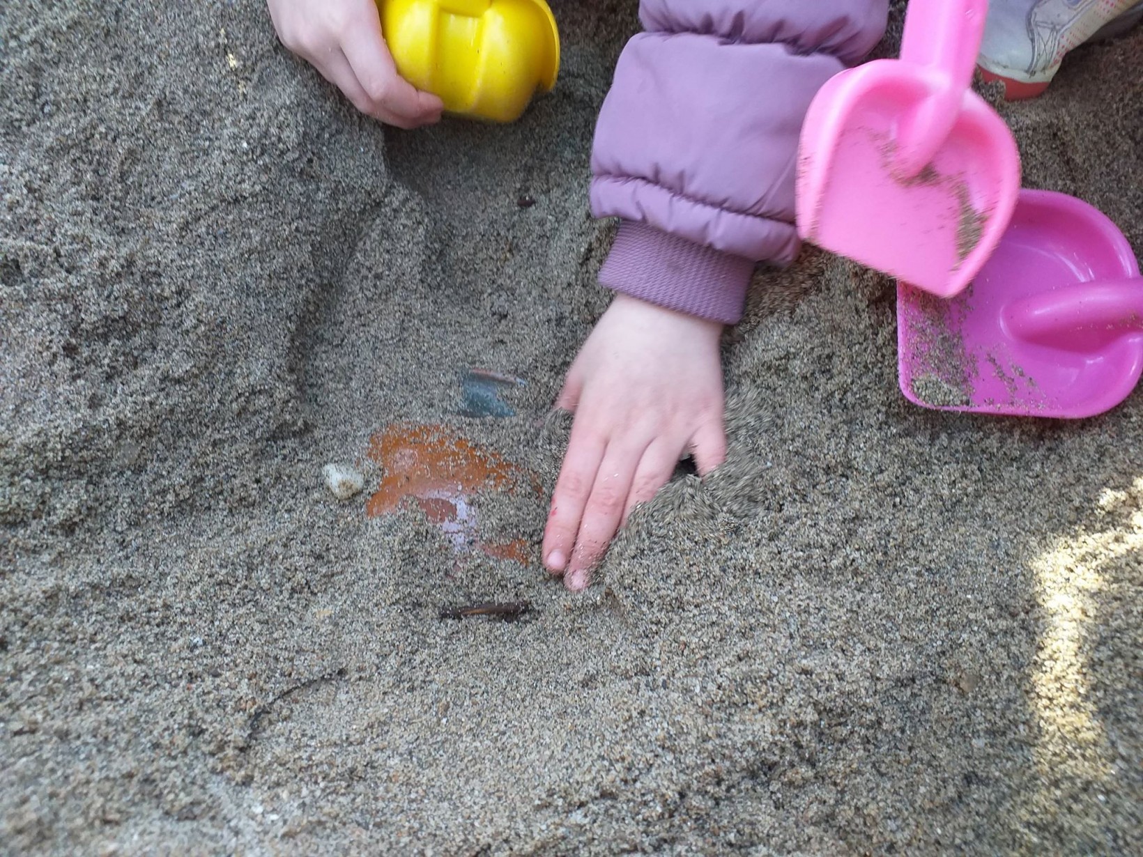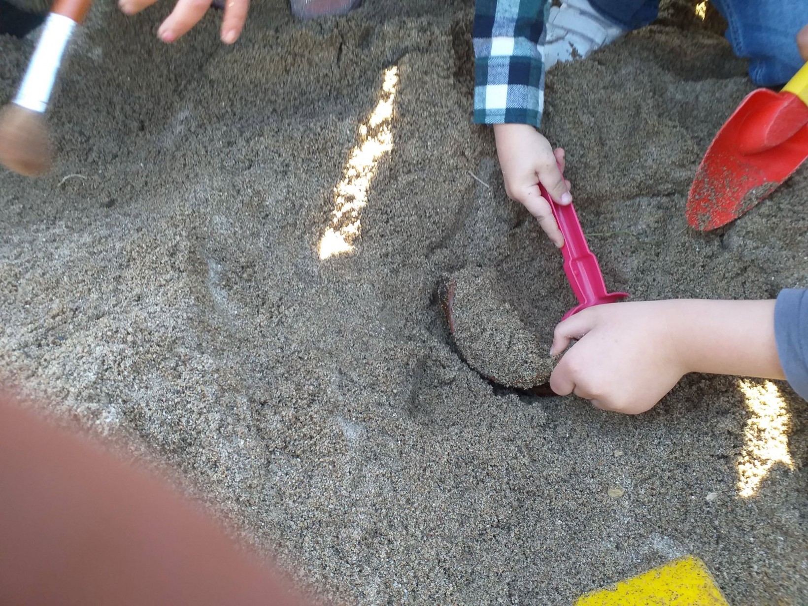 Σήμερα στο Νηπιαγωγείο κάναμε την δική μας ανασκαφή και ανακαλύψαμε κομμάτια από αγγεία, τα οποία στη συνέχεια τα συναρμολογήσαμε. Ακολουθήσαμε όλη την πορεία εργασιών που κάνουν οι αρχαιολόγοι: ορίσαμε με κορδέλα το χώρο, σκάψαμε με προσοχή, καθαρίσαμε καλά με πινέλα τα κομμάτια που ανακαλύψαμε και τα ενώσαμε.