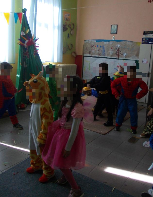 Σε μια μεγάλη κατασκευή σε σχήμα τηλεφώνου που τοποθετήσαμε στο πάτωμα, τα παιδιά πειραματίστηκαν και προσπάθησαν να πάρουν τηλέφωνο στο σπίτι τους. Πατούσαν αρχικά τα νούμερα με τα πόδια και στη συνέχεια με τα χέρια. Στο τέλος κάλεσαν με πραγματικό τηλέφωνο το σπίτι τους. Ο ενθουσιασμός τους ήταν μεγάλος!