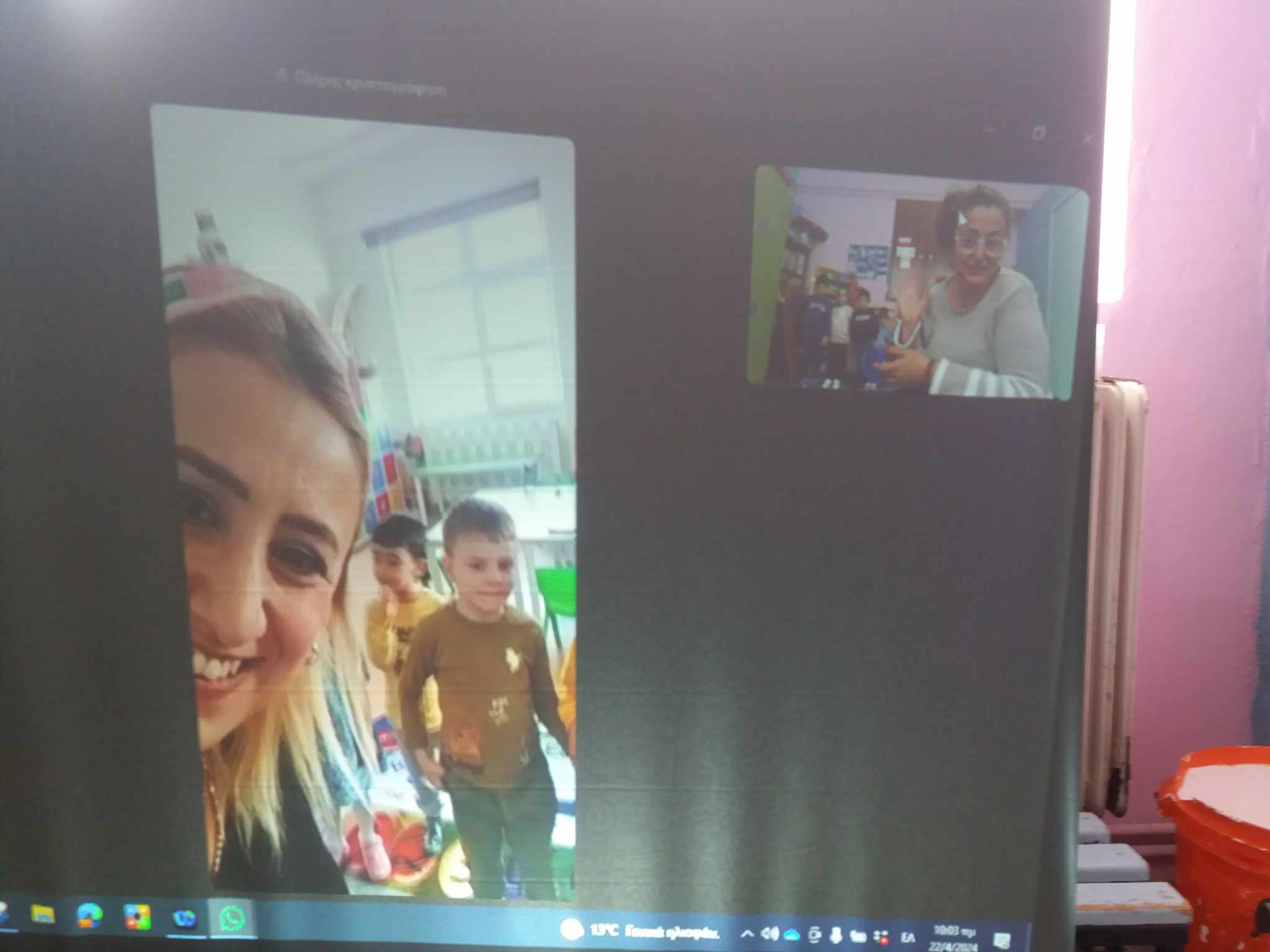 Στο Πρόγραμμα etwinning με τίτλο “Art Workshop” , τον μήνα Απρίλιο, ασχοληθήκαμε με  Χορό και  Μουσική. Στις 22 Απριλίου συναντηθήκαμε διαδικτυακά με έναν εταίρο-σχολείο   από την Τουρκία. Τα παιδιά γνωρίστηκαν μεταξύ τους και αντάλλαξαν χαιρετισμούς στην γλώσσα τους.  Κάθε σχολείο παρουσίασε  ένα χορό με τη συνοδεία μουσικών οργάνων. Εμείς χορέψαμε το παιδικό τραγούδι “Ο Παγωτατζής”. Πραγματικά το διασκεδάσαμε πολύ!!!