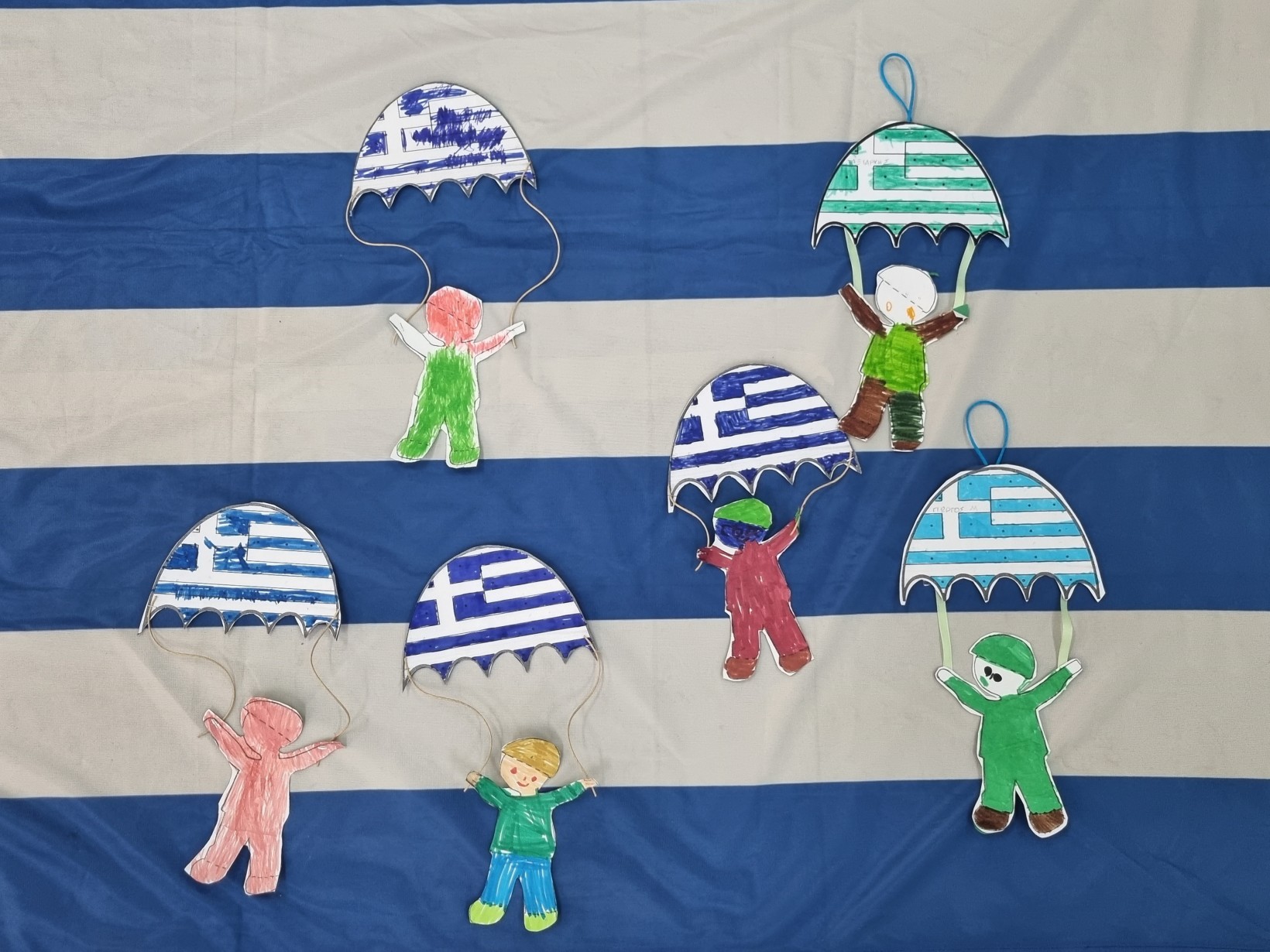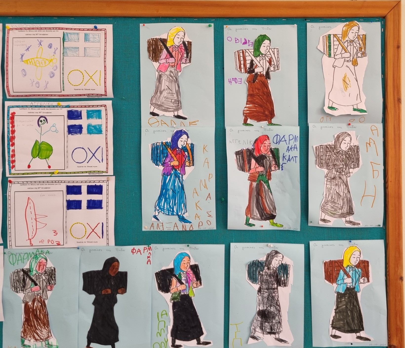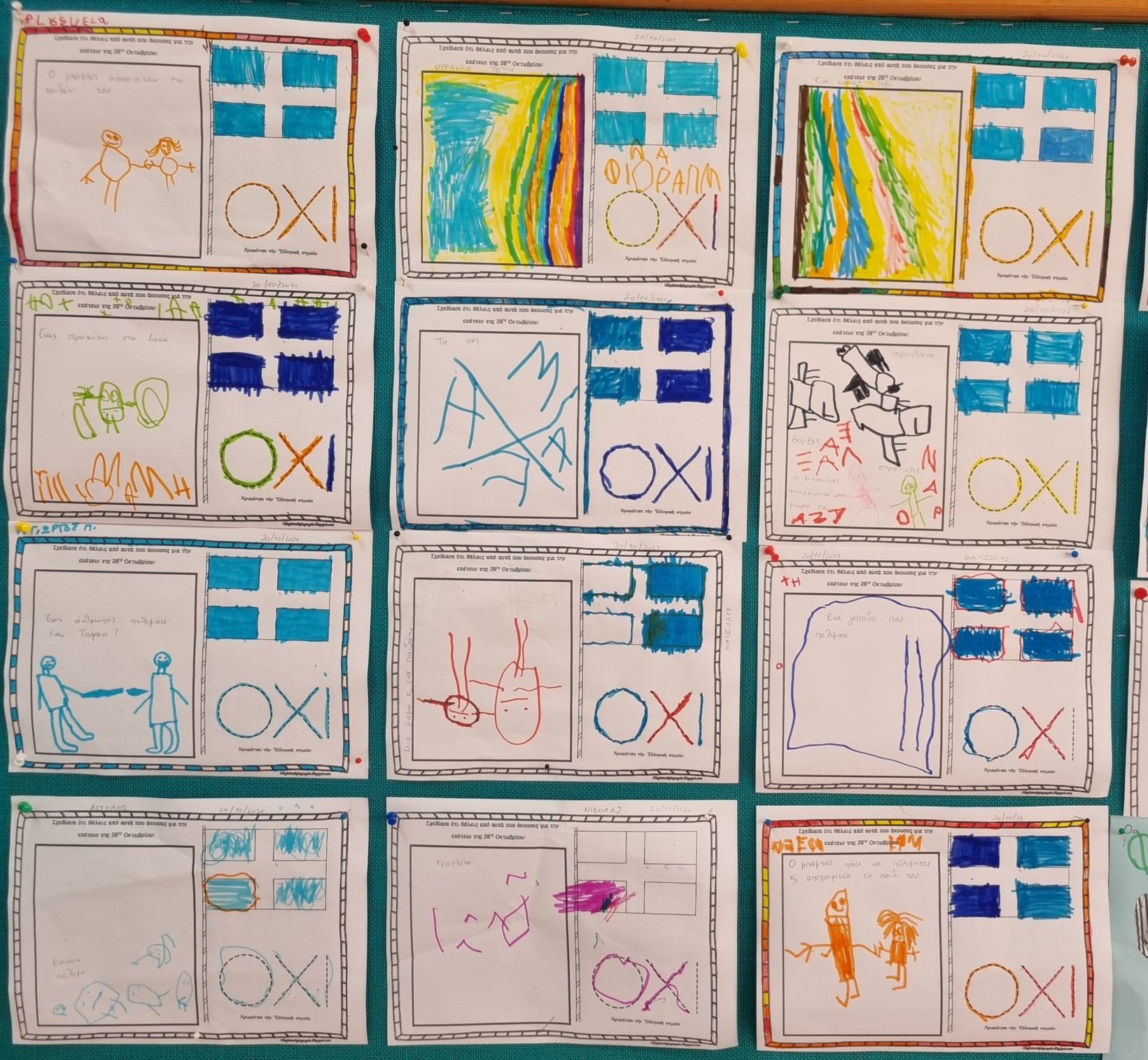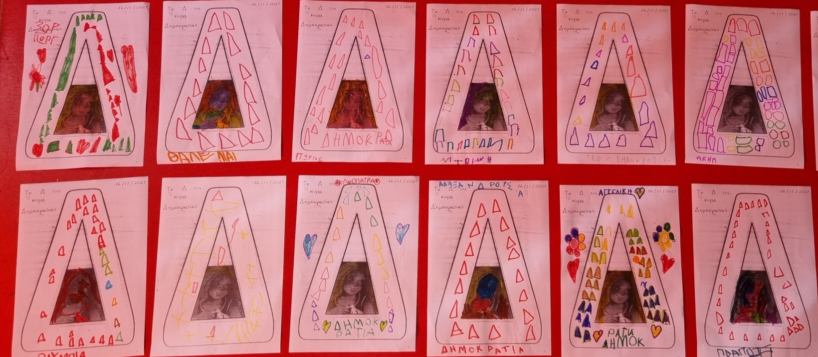 Κάναμε ομαδικό κολάζ. Η κυρά Δημοκρατία αποτυπώθηκε με ζωηρά χρώματα και χαρούμενες ζωγραφιές σε αντίθεση με την κυρά Δικτατορία.
