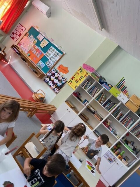 Η θεματική των χρωμάτων προσεγγίστηκε φέτος μέσα από πειραματισμούς, ενδεικτικά δείγματα γνωστών ζωγράφων σύγχρονων ρευμάτων ζωγραφικής (Miro, Picaso), διδακτική αξιοποίηση παιδικών βιβλίων όπως “Το παραμύθι με τα χρώματα” και “Έλμερ ο παρδαλός ελέφαντας”, τραγούδια και πολλά παιχνίδια.