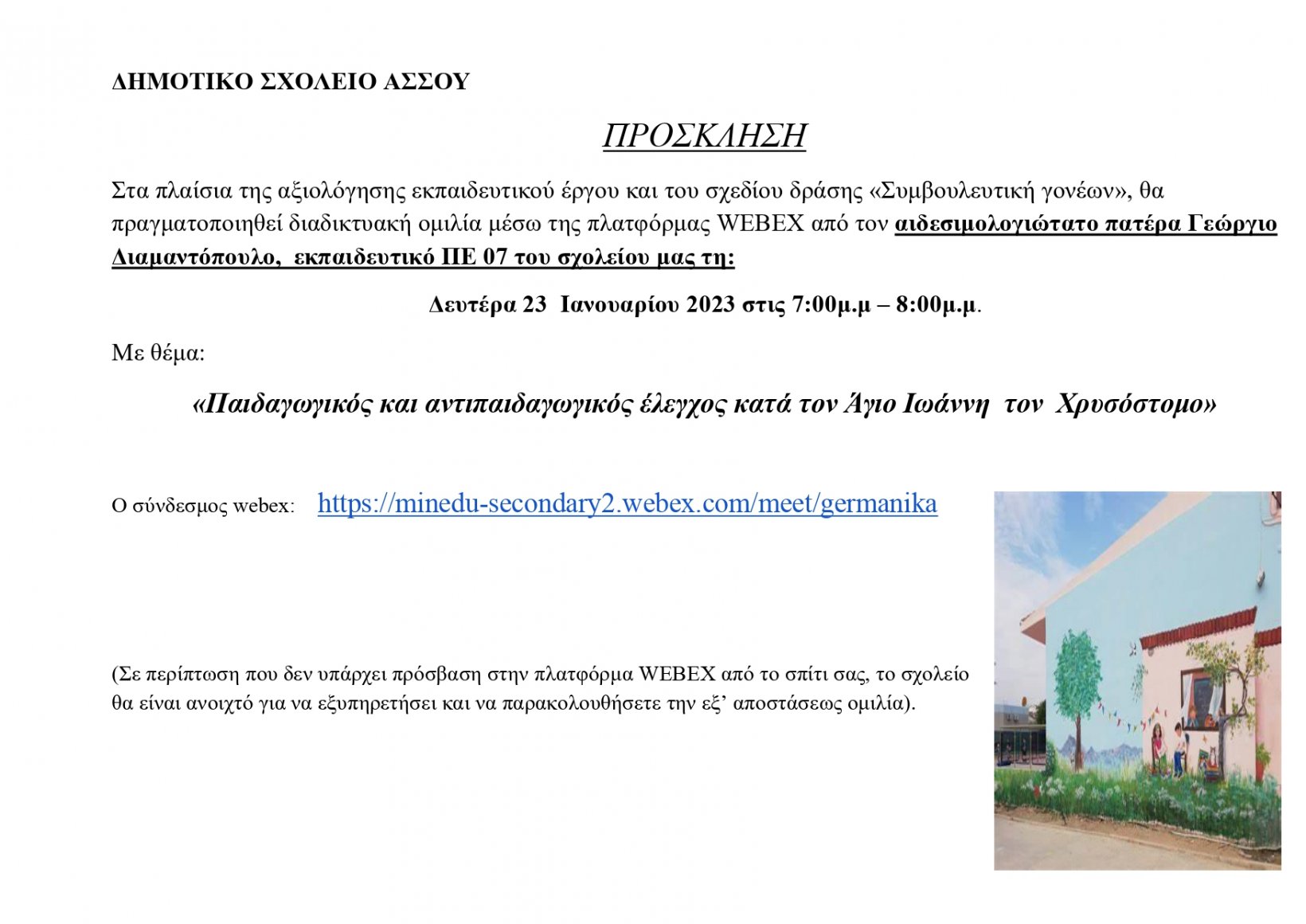 Η εκδήλωση θα λάβει χώρα από τις 17.30 έως τις 21.00.