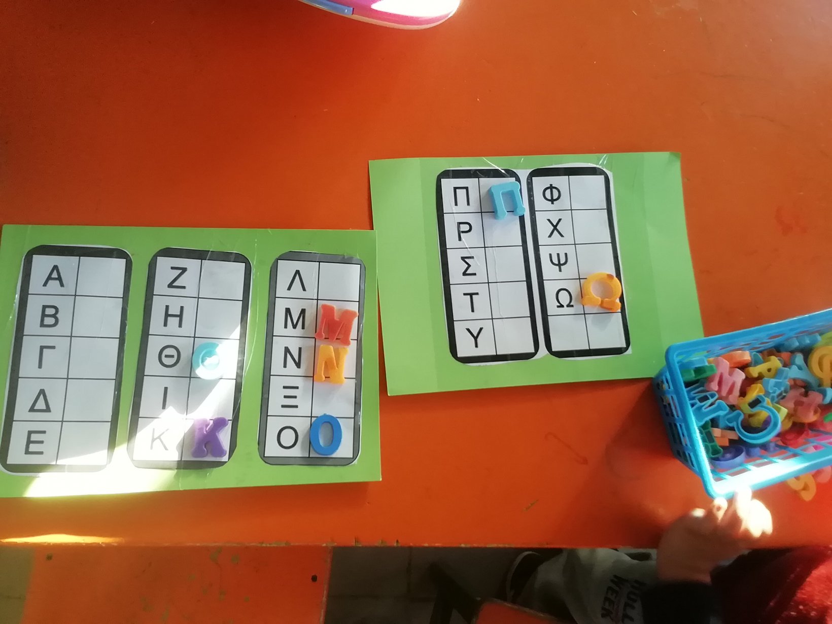 Πάμε να τηγανισούμε αυγουλογραμματάκια! Ένα ένα παιδάκι βρίσκει το αυγό του και το ρίχνει… Στο τηγάνι.