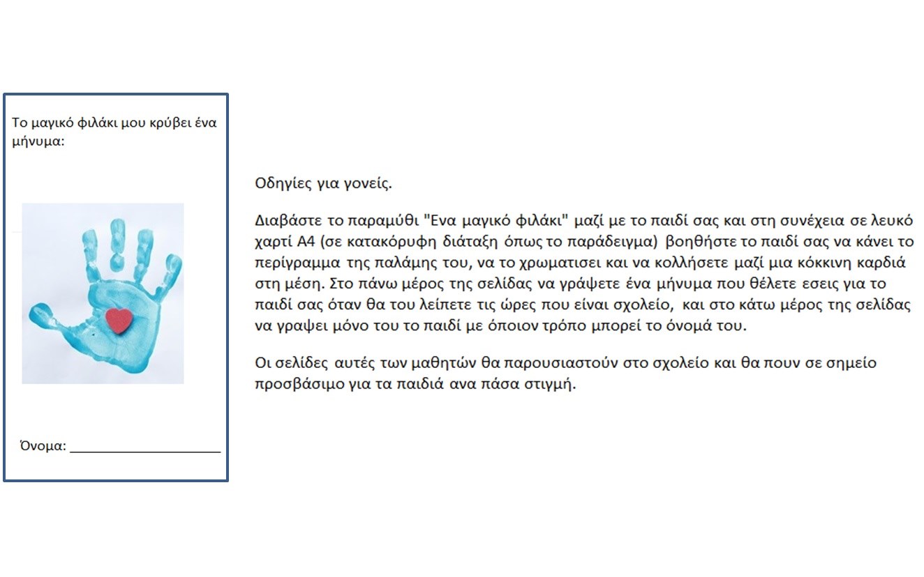 Μπορείτε να προτείνετε τις παραπάνω επιλογές στο παιδί σας για τις ώρες που θα βρίσκονται στο σχολείο που θα τα βοηθήσουν να διαχειριστούν το άγχος του αποχωρισμού.