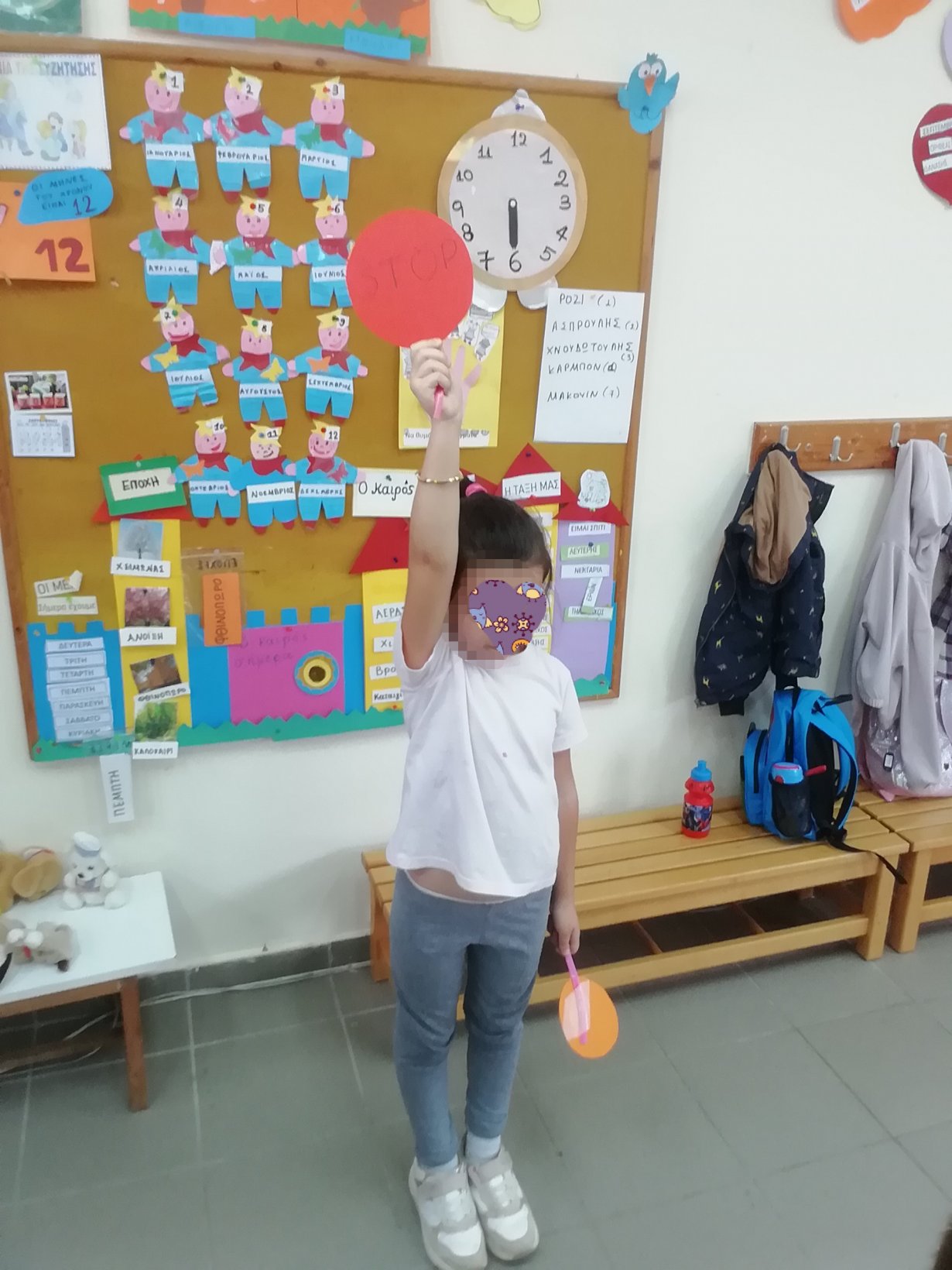 – Απομόνωση του/της μαθητή/τριας σε προκαθορισμένο καλά αεριζόμενο χώρο, με επίβλεψη, μακριά από τα υπόλοιπα παιδιά και εφαρμογή απλής χειρουργικής μάσκας.