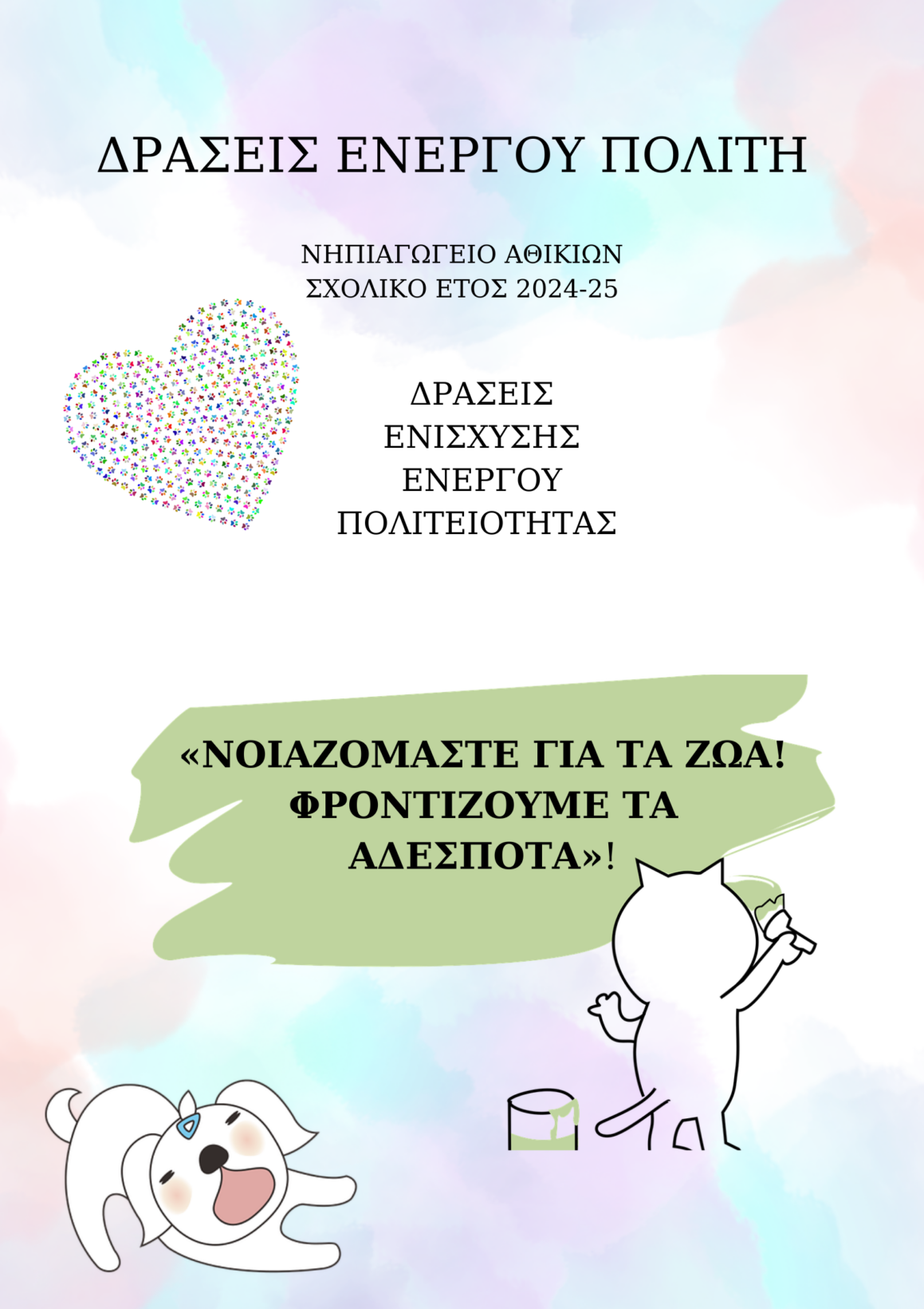 Με μια ζεστή και συγκινητική εκδήλωση, αποχαιρετίσαμε τη φετινή σχολική χρονιά στο νηπιαγωγείο μας με την καθιερωμένη καλοκαιρινή και αποχαιρετιστήρια γιορτή, την οποία αφιερώσαμε στα αδέσποτα ζώα, στις δράσεις ενεργού πολίτη και στο έργο που υλοποιήσαμε φέτος μέσα από το Εργαστήριο Δεξιοτήτων.