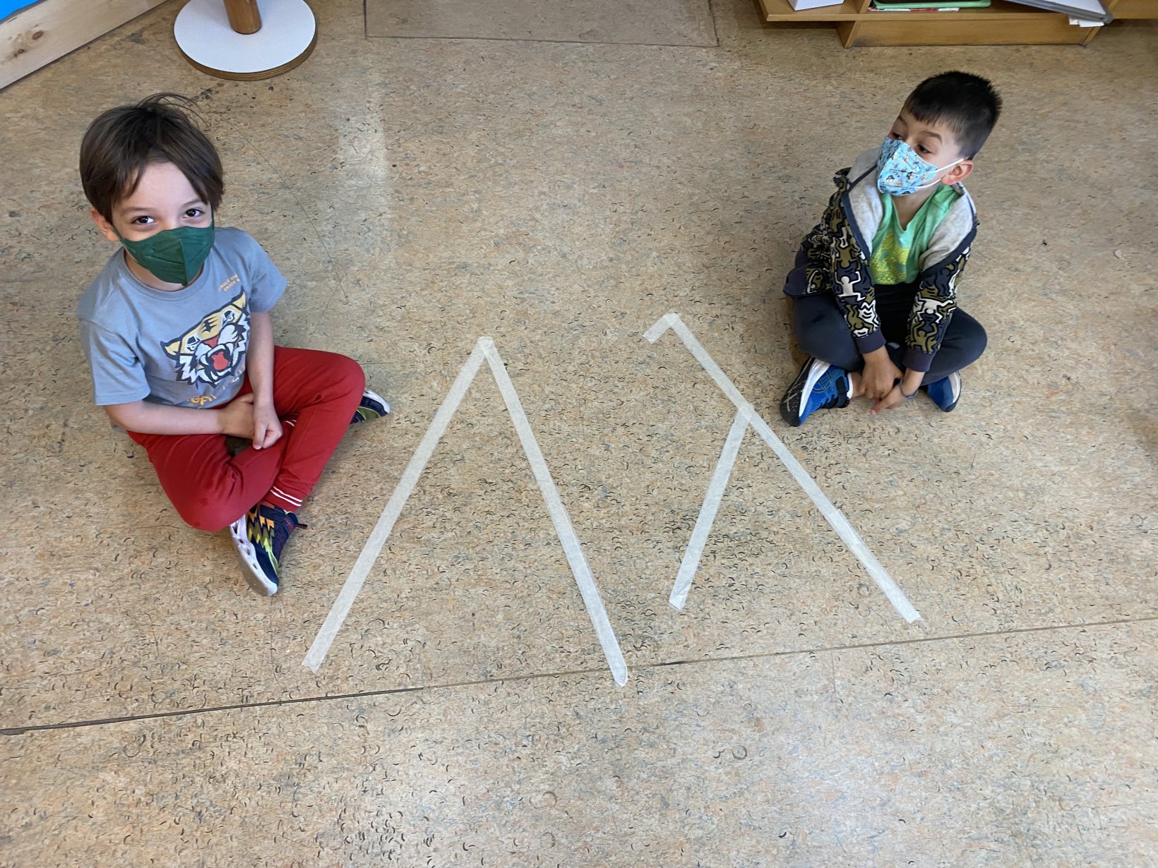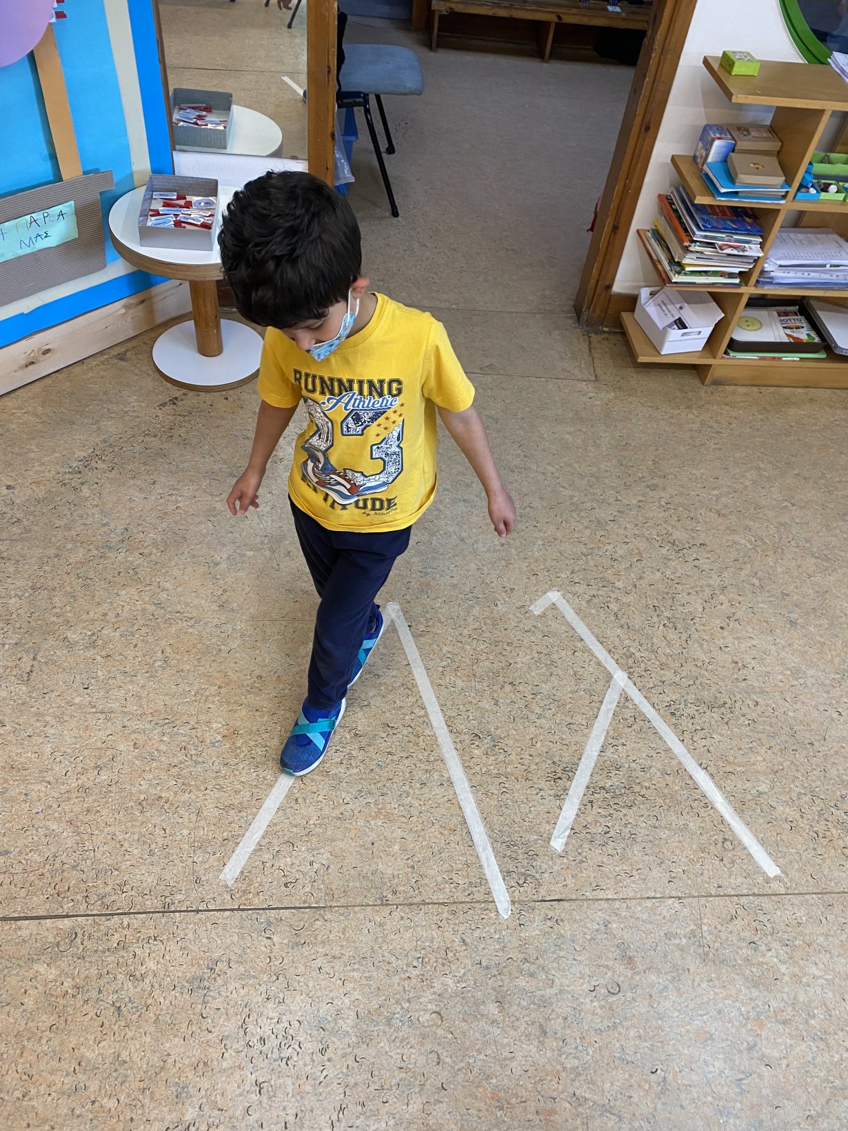 ………και αφού γράψαμε τη λέξη στο πάνω μέρος του χαρτιού μιλήσαμε για το γράμμα Λ λ και για το πόσο συχνά το συναντάμε σε λέξεις που χρησιμοποιούμε στη καθημερινότητα μας. Ύστερα, για να το κατανοήσουμε ακόμα καλύτερα, το φτιάξαμε στο πάτωμα με χαρτοταινία και πατήσαμε πάνω του, κάνοντας ισορροπία.