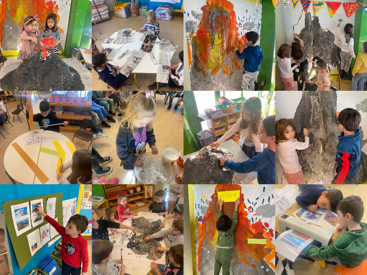 Στην επόμενη ολομέλεια της τάξης, τα παιδιά πρότειναν να δημιουργήσουμε ένα δικό μας ηφαίστειο. Αφού επεξεργαστήκαμε τις ιδέες, η ομάδα ψήφισε να γίνει με ανακυκλώσιμα υλικά σε μορφή μακέτας και να χρησιμοποιηθεί σαν γωνιά για παιχνίδι στην τάξη.