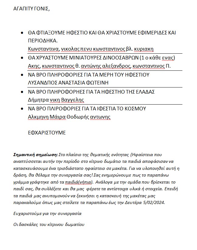 Εικόνα 4. Το γράμμα που στείλαμε στους γονείς