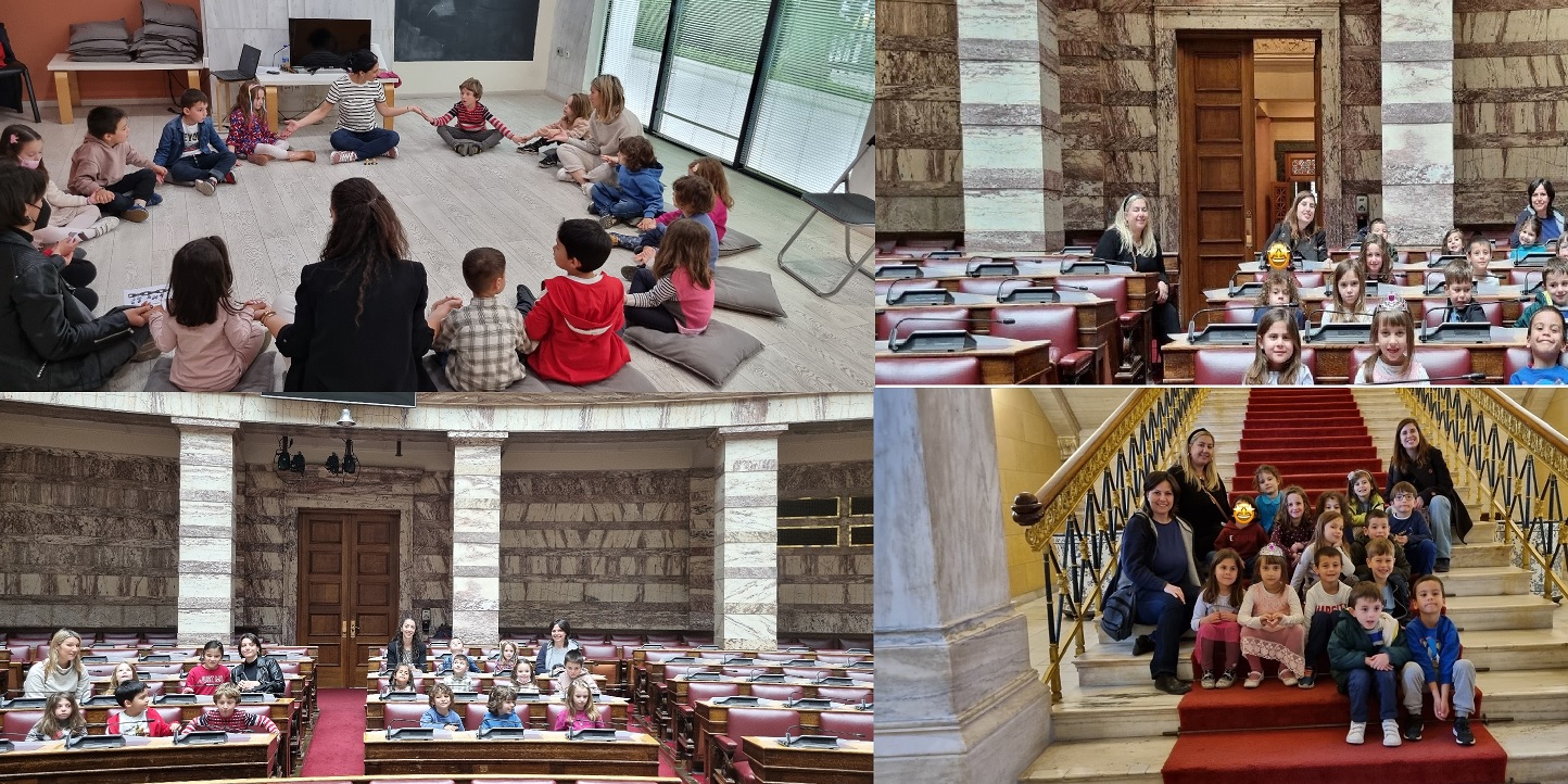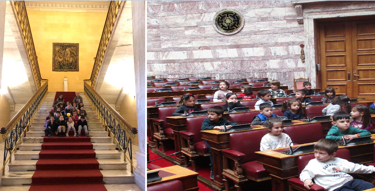 Στο πλαίσιο αυτό, την τρέχουσα σχολική χρονιά τα νήπια του Σχολείου μας παρακολούθησαν στο Ίδρυμα της Βουλής των Ελλήνων εκπαιδευτικό πρόγραμμα με τίτλο: «Μικρό εργαστήρι Δημοκρατίας». Το πρόγραμμα στοχεύει στη γνωριμία και την εξοικείωση των μαθητών/τριών με τις αρχές και τις αξίες της Δημοκρατίας, τη λειτουργία του Κοινοβουλίου καθώς και στην ανάδειξη του ρόλου του πολίτη στο πλαίσιο του δημοκρατικού πολιτεύματος. Η εκπαιδευτική δράση ολοκληρώθηκε με επίσκεψη στην αίθουσα της Ολομέλειας της Βουλής και ξενάγηση στους χώρους του Κοινοβουλίου.