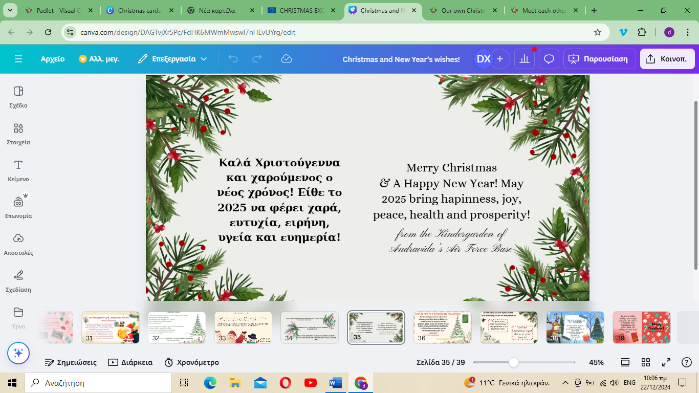 Τελευταία μας δράση η ανταλλαγή ευχών με τους εταίρους μας