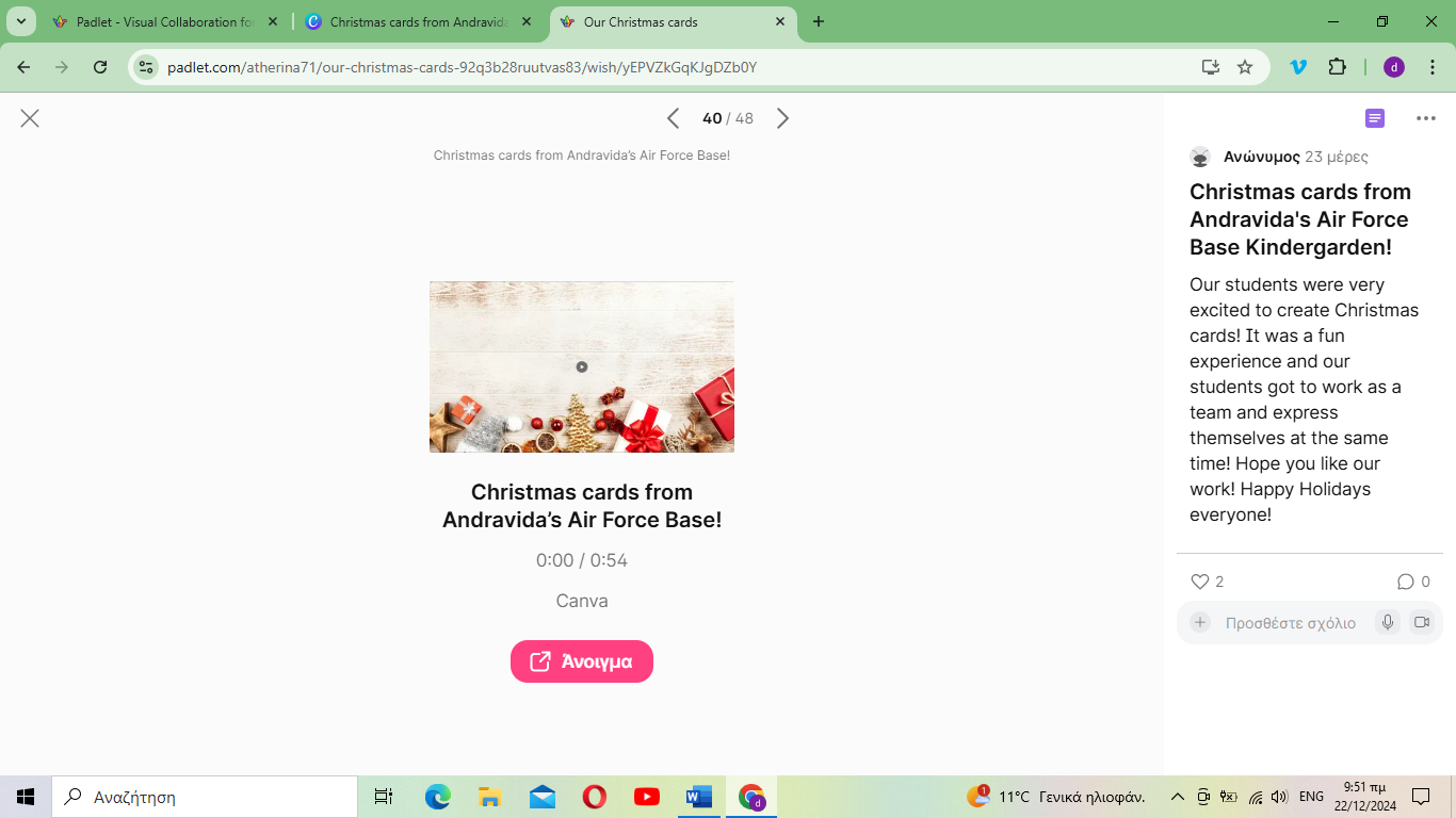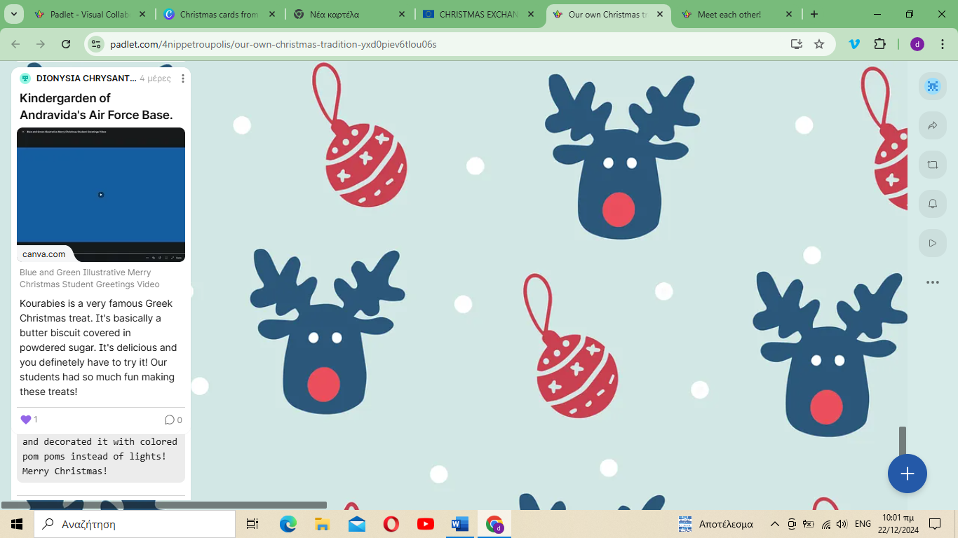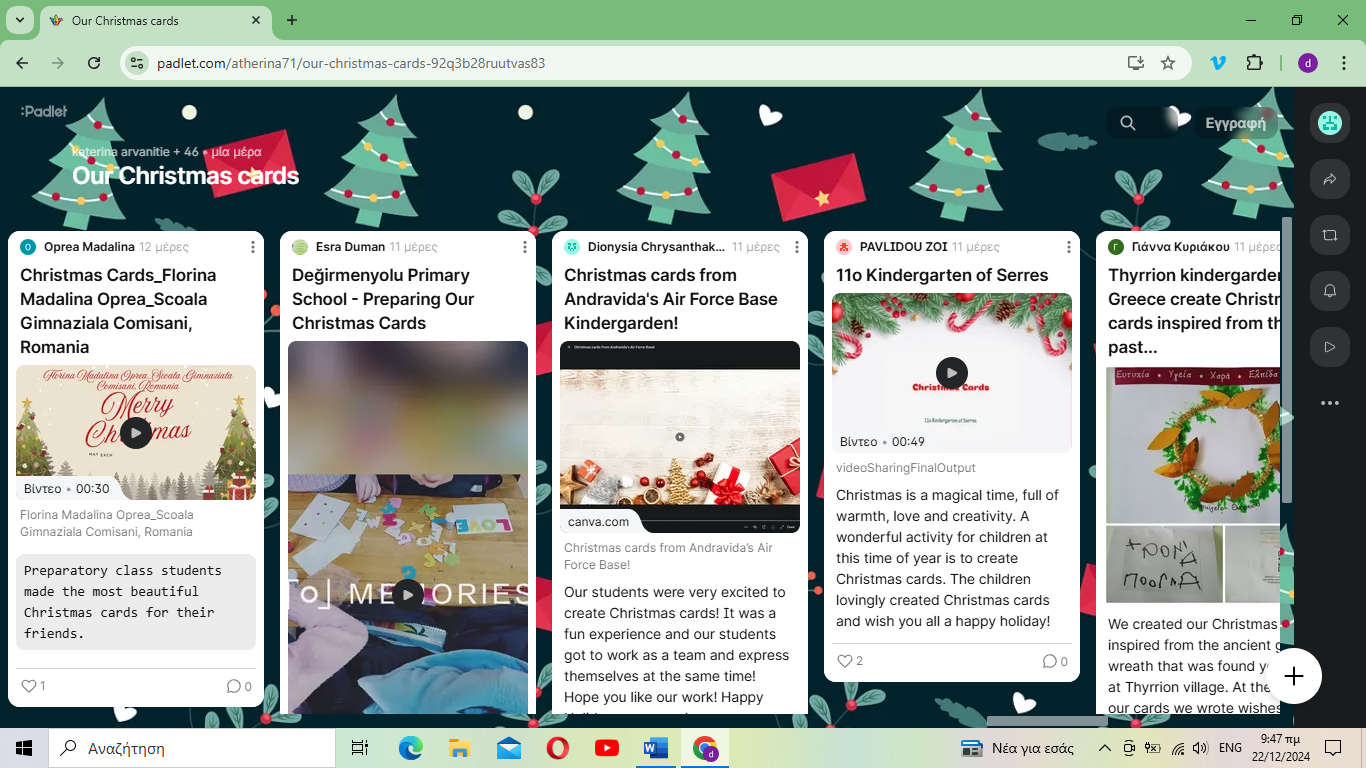 Πήραμε μέρος σε etwinning πρόγραμμα ανταλλαγής χριστουγεννιάτικων καρτών.