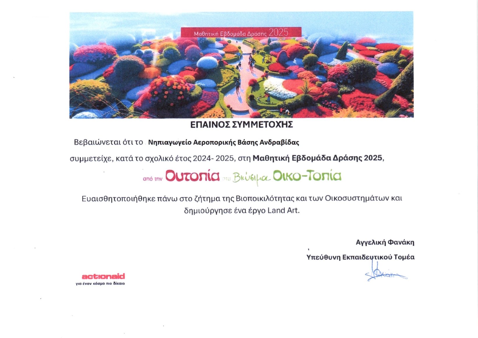 Στα πλαίσια του 2ου θεματικού κύκλου των εργαστηρίων δεξιοτήτων ” Φροντίζω το περιβάλλον” με τίτλο “τα θροΐσματα του δάσους” η σχολική μας μονάδα έλαβε μέρος στην 21η ετήσια μαθητική εβδομάδα Δράσης 2025.της Action Aid.