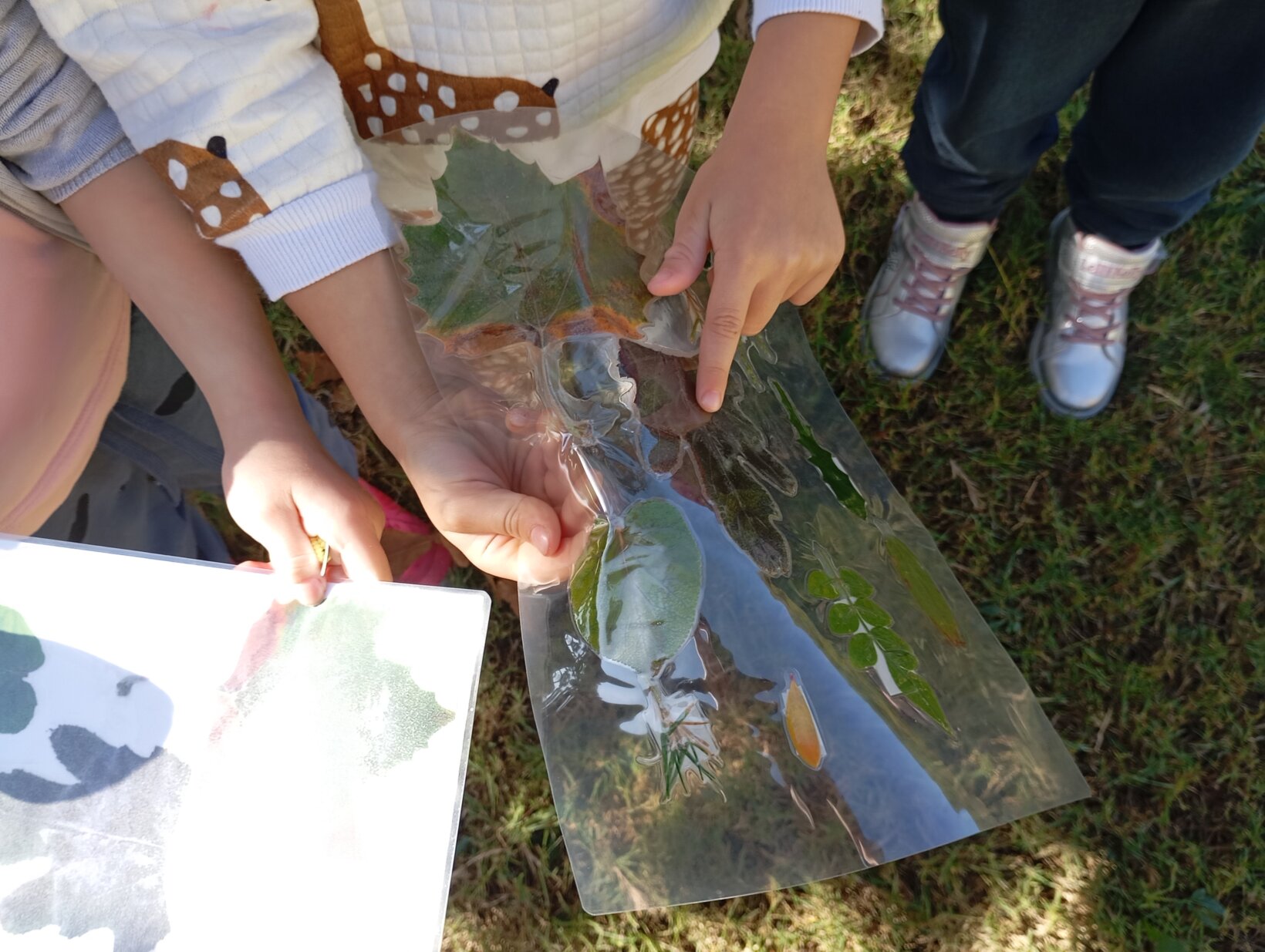 Στη συνέχεια τα παιδιά έχοντας το ρόλο του μικρού ερευνητή χωρίστηκαν σε ομάδες και μελετώντας τον χάρτη ξεκίνησαν την εξερεύνηση στο προαύλιο για να βρουν τα χαμένα φύλλα.