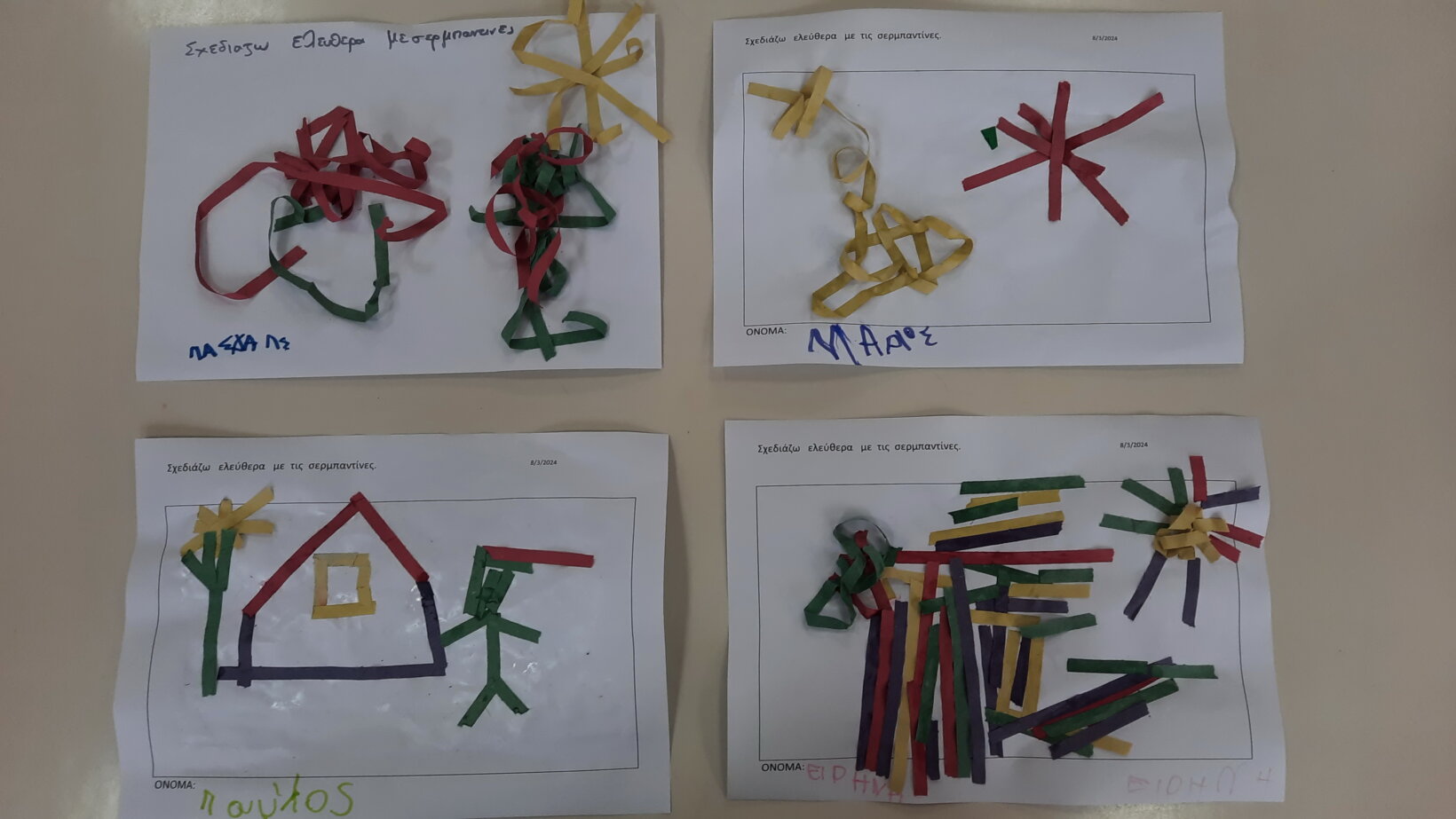 Δημιουργούμε με κολλάζ συνθέσεις με τις σερμπαντίνες (ελεύθερη δραστηριότητα)………..