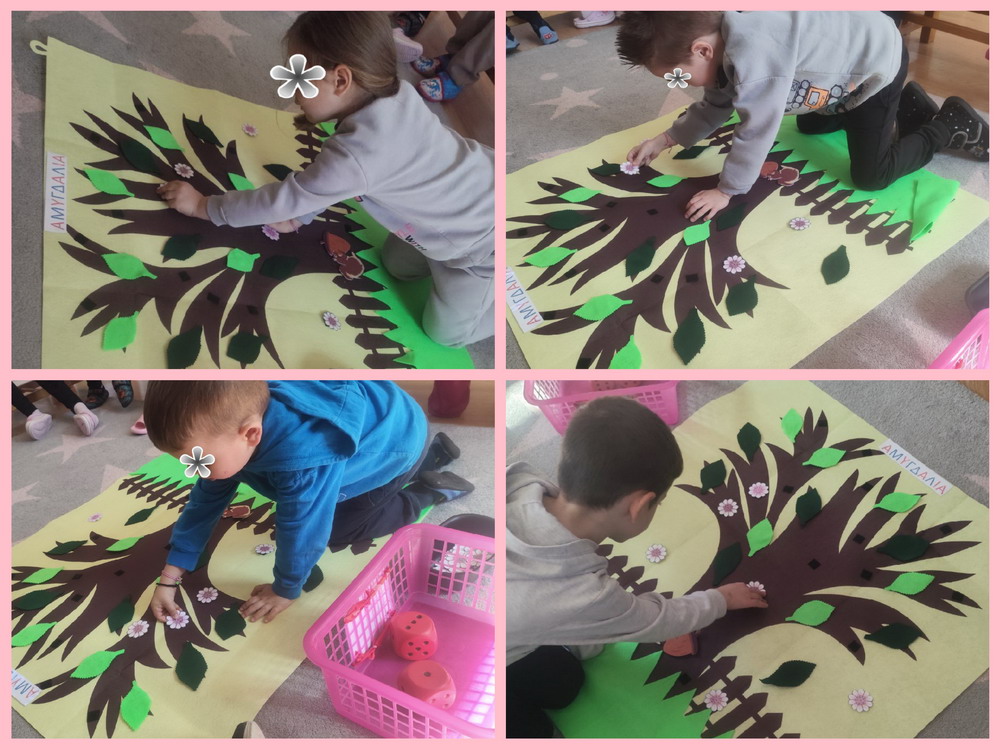 Ένα παιχνίδι αρίθμησης και διασκέδασης με τα παιδιά να τοποθετούν τα άνθη της αμυγδαλιές στο δέντρο………..