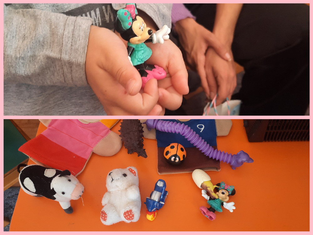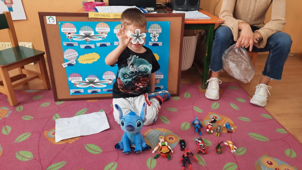 Κάθε παιδί φέρνει από το σπίτι του ένα μικρό αγαπημένο αντικείμενο. ¨ολα τα αντικείμενα παιχνιδάκια μπαίνουν σε μία τσάντα . Το κάθε παιδί χωρίς να βλέπει παίρνει ένα αντικείμενο.. …..Το αποκαλύπτει στην ολομέλεια και μαθαίνουμε το περιγράφουμε και λέμε ποιανού είναι; Όλοι νιώθουν ενθουσιασμένοι και περιμένουν τη σειρά τους.