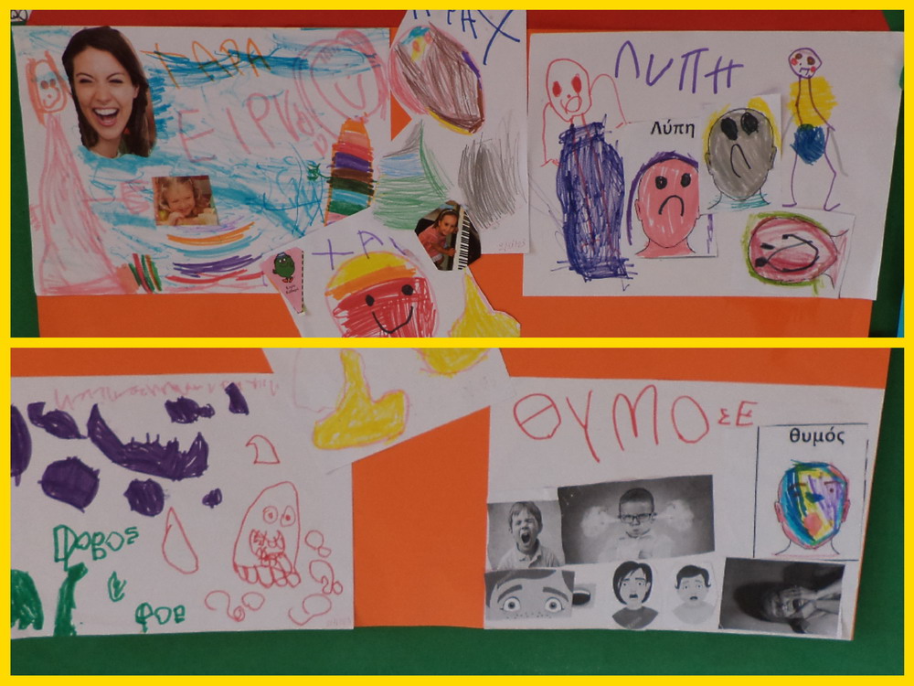 Ομαδοποίηση των συναισθημάτων σε ένα ομαδικό κολλάζ (χαρά, λύπη, φόβος, θυμός, κούραση-χαλάρωση, πείνα κ.λ.π.
