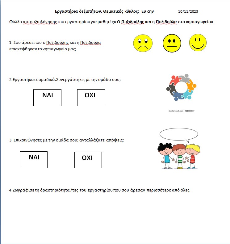 Τελειώνουμε με το φύλλο αξιολόγησης από τα παιδιά για το πρόγραμμα: Ο Πυξιδούλης και η Πυξιδούλα στο νηπιαγωγείο!