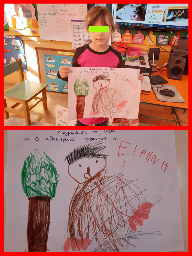 Παρακολουθούμε βίντεο που να παρουσιάζουν μύθους από όλο τον κόσμο σχετικά με τη δημιουργία του σεισμού. αρχίζουμε με τον ελληνικό μύθο του Εγκέλαδου. Ποιος ήταν ο εγκέλαδος; διαβάζουμε τον σχετικό μύθο. Τα νήπια ζωγραφίζουν τον Εγκέλαδο όπως τον φαντάζονται…