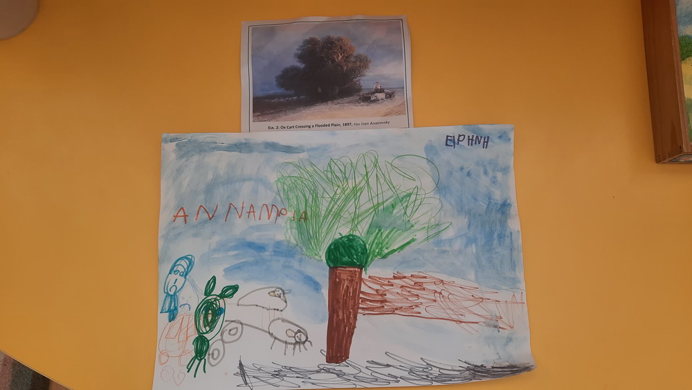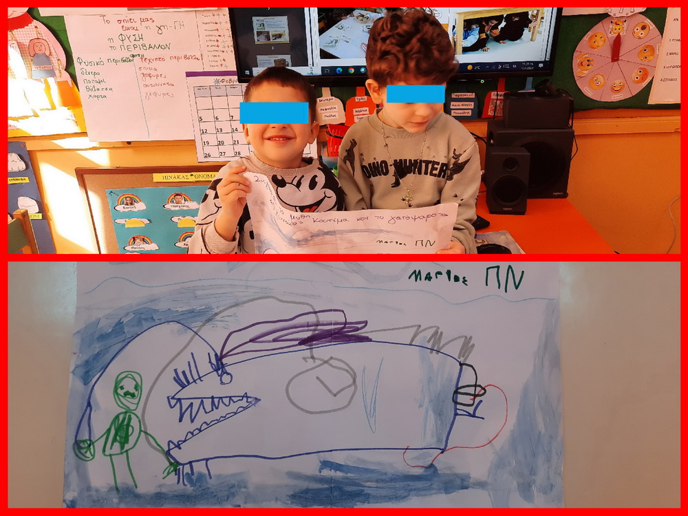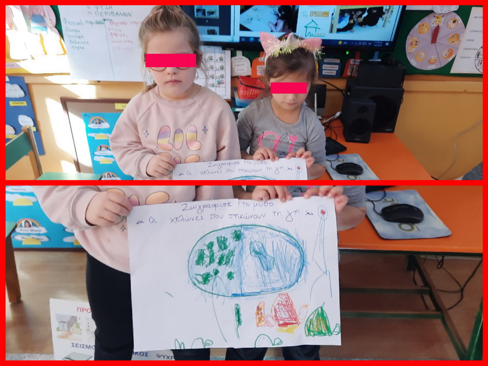 Παρακολουθούμε μύθους κι άλλων λαών γύρω από τον σεισμό. Έπειτα οι μαθητές χωρίζονται σε ομάδες των δύο ατόμων και προσπαθούν να αναπαραστήσουν τους μύθους με την ζωγραφική. Παρουσιάζουν στην ολομέλεια τις εργασίες τους.