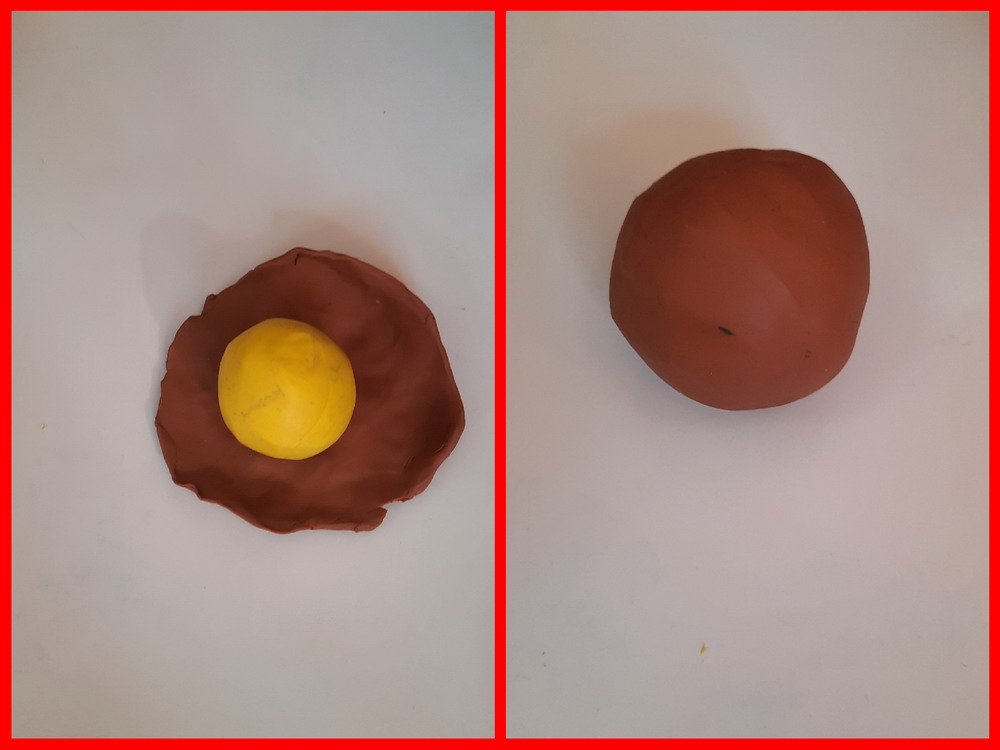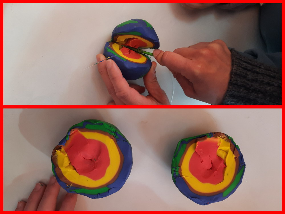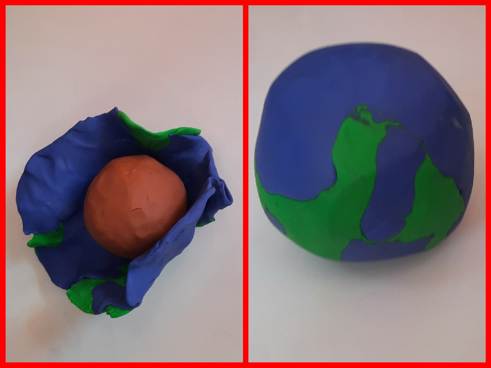 Στη συνέχεια το εσωτερικό της γης με πλαστελίνη……….
