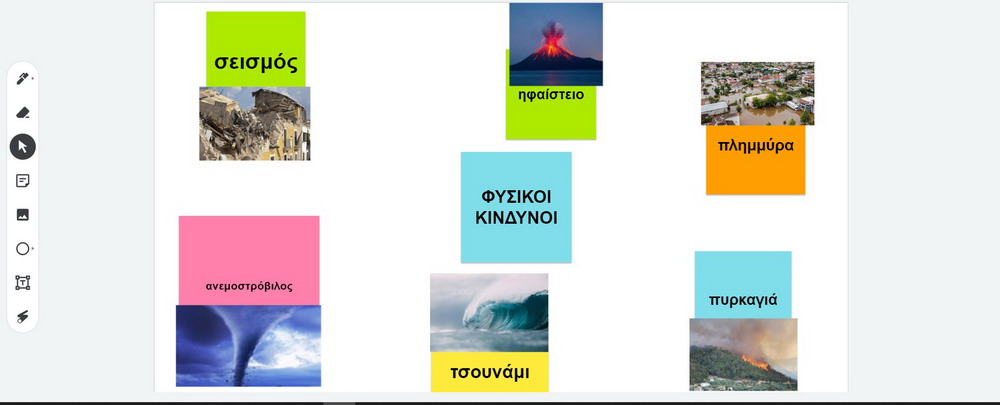 Στη συνέχεια δημιουργούμε εννοιολογικό χάρτη με τους Φυσικούς κινδύνους στο jamboard