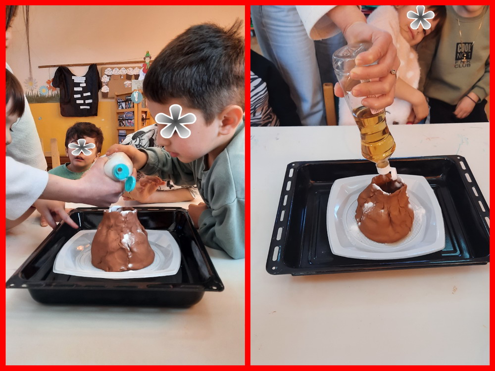 Συνεχίζουμε το θέμα μας και αναφερόμαστε στην σχέση ενός σεισμού και ηφαιστείου, Μπορεί μετά από ένα σεισμό να έχουμε και την έκρηξη του ηφαιστείου. Τα νήπια μιλούν για τα ηφαίστεια . Αναζητούμε πληροφορίες στο διαδίκτυο. Μιλάμε για τα ηφαίστεια της χώρας μας, για υποθαλάσσια ηφαίστεια, για ενεργά και μη ενεργά. Δημιουργούμε ένα ηφαίστειο ,κάνουμε το πείραμα ………………………