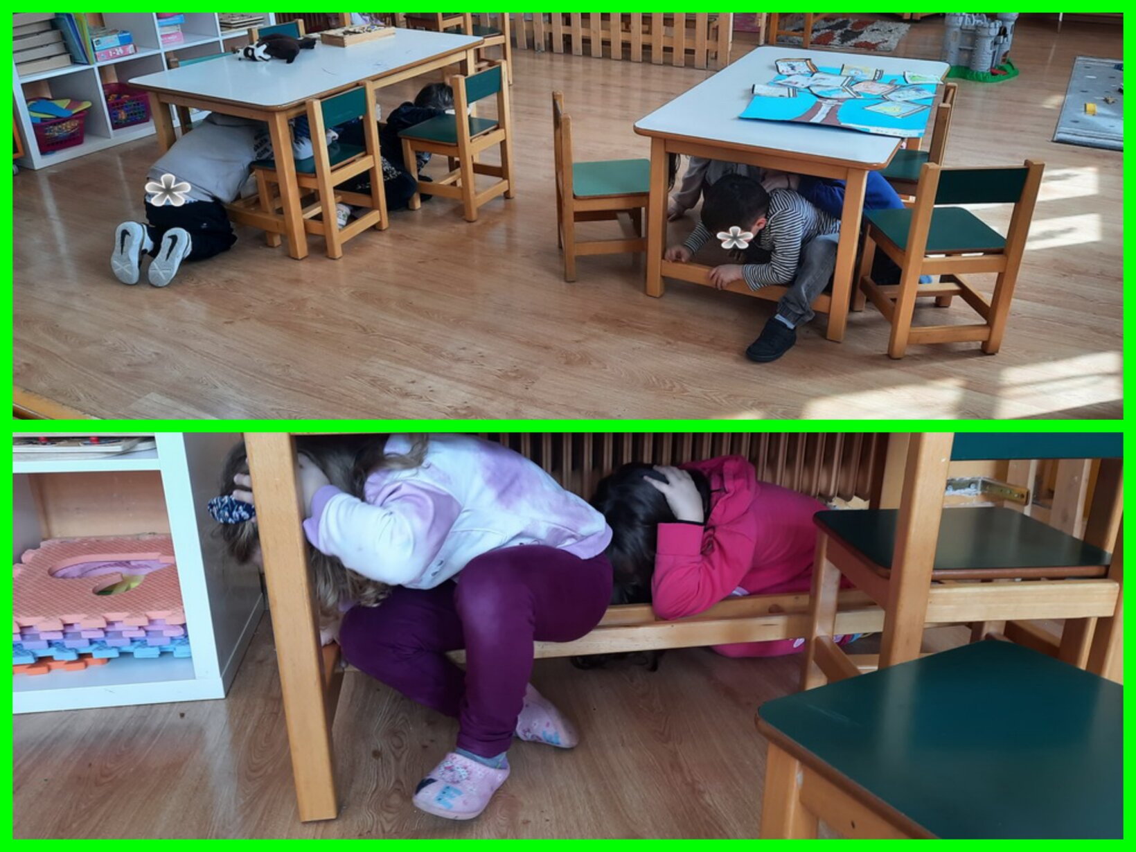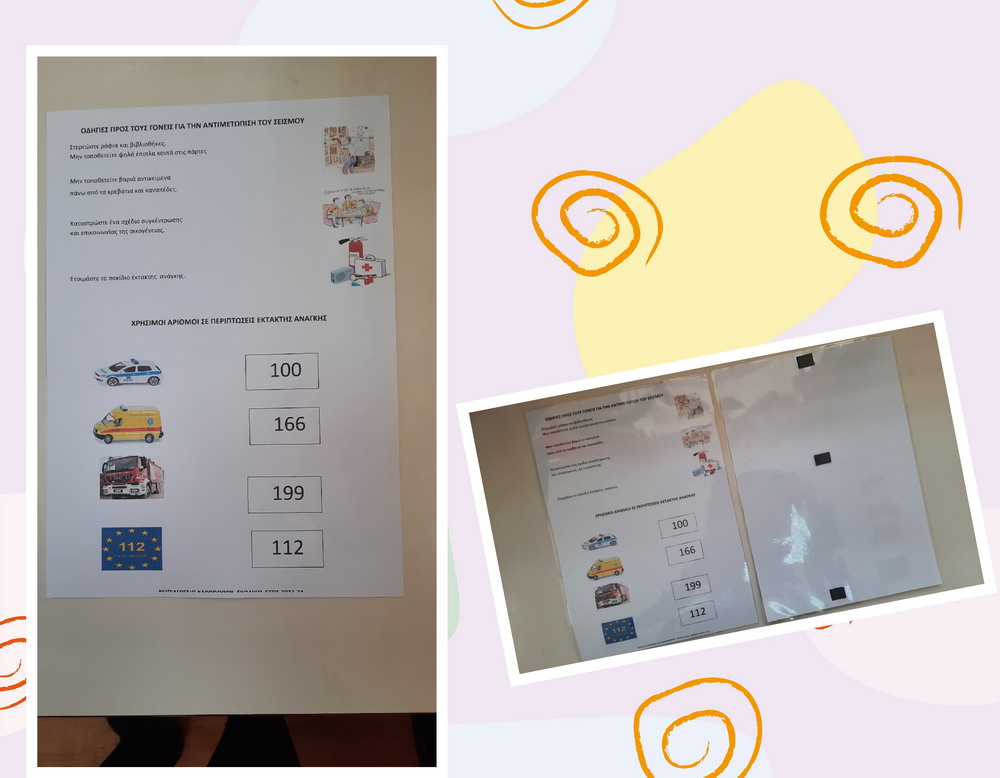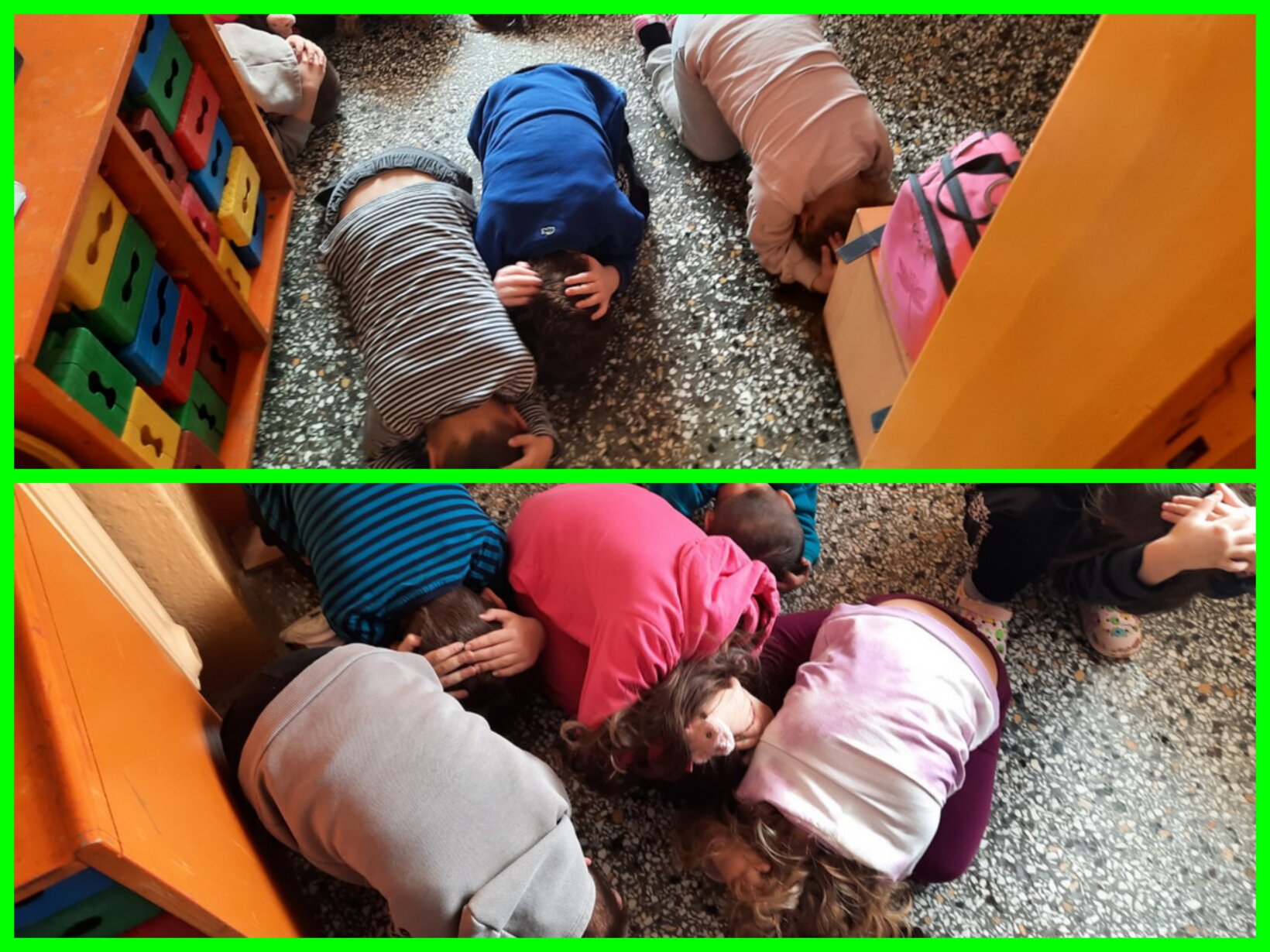 Παράλληλα τα νήπια θα ζωγραφίσουν, θα τραγουδήσουν, θα δουν εκπαιδευτικά και χρήσιμα βίντεο, θα ακούσουν μύθους γύρω από τον σεισμό, θα ενημερωθούν οι ίδιοι αλλά θα έχουν την ευκαιρία να συζητήσουν , να ενημερώσουν τις οικογένειές τους με όσα ασχολούμαστε στο σχολείο( απαιτούμενες ενέργειες πριν, κατά τη διάρκεια και μετά την εκδήλωση ενός σεισμού).