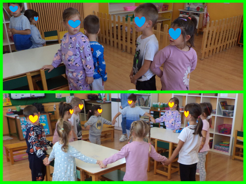 Παίζουμε το σπασμένο τηλέφωνο(εισαγωγική δραστηριότητα). Τα νήπια εξοικειώνονται με τη λειτουργία της ομάδας και αισθάνονται σημαντικά μέλη της. - Καθόμαστε στον κύκλο, με μία καρέκλα λιγότερη και ένας μένει όρθιος στη μέση (ξεκινάμε με τον εκπαιδευτικό). Δίνουμε στα παιδιά διάφορες εντολές όπως: «Να σηκωθούν όσοι έχουν καστανά μαλλιά», «Να σηκωθούν όσοι αγαπούν την σοκολάτα!».