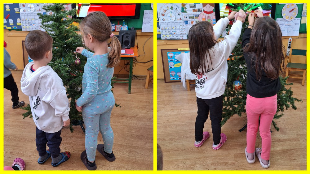 Το εορταστικό κλίμα των ημερών πλανάται εκτός και εντός του σχολείου . Τα παιδιά μεταφέρουν τις πληροφορίες , παρατηρήσεις, εντυπώσεις τους στο σχολείο. Στην ολομέλεια συζητάμε για το τι γιορτάζουμε(θρησκευτικά γεγονότα) τα ήθη και έθιμα που έχουμε….. Ακούμε και τραγουδάμε διάφορα κάλαντα. Διαβάζουμε παραμύθια, κινούμαστε σε γιορτινούς ρυθμούς(Αι Βασίλης, Ρούντολφ, χιονονυφάδες, καμπανούλες…..). Παίζουμε Δημιουργούμε και εκφραζόμαστε με ατομικές και ομαδικές κατασκευές αλλά και προετοιμαζόμαστε για την γιορτή μας(τραγούδια θεατρικό… κ.λ.π.