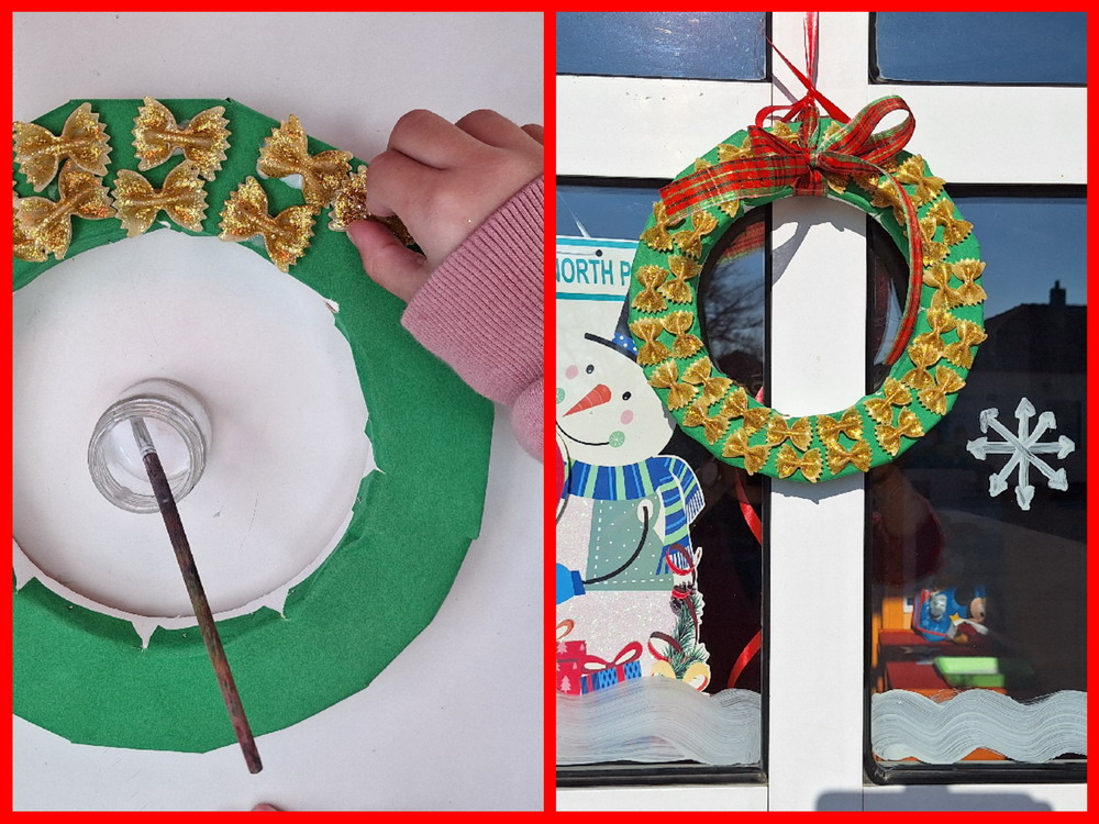 Διακοσμούμε την είσοδο του Νηπιαγωγείου με ένα γιορτινό στεφάνι (ομαδική εργασία).