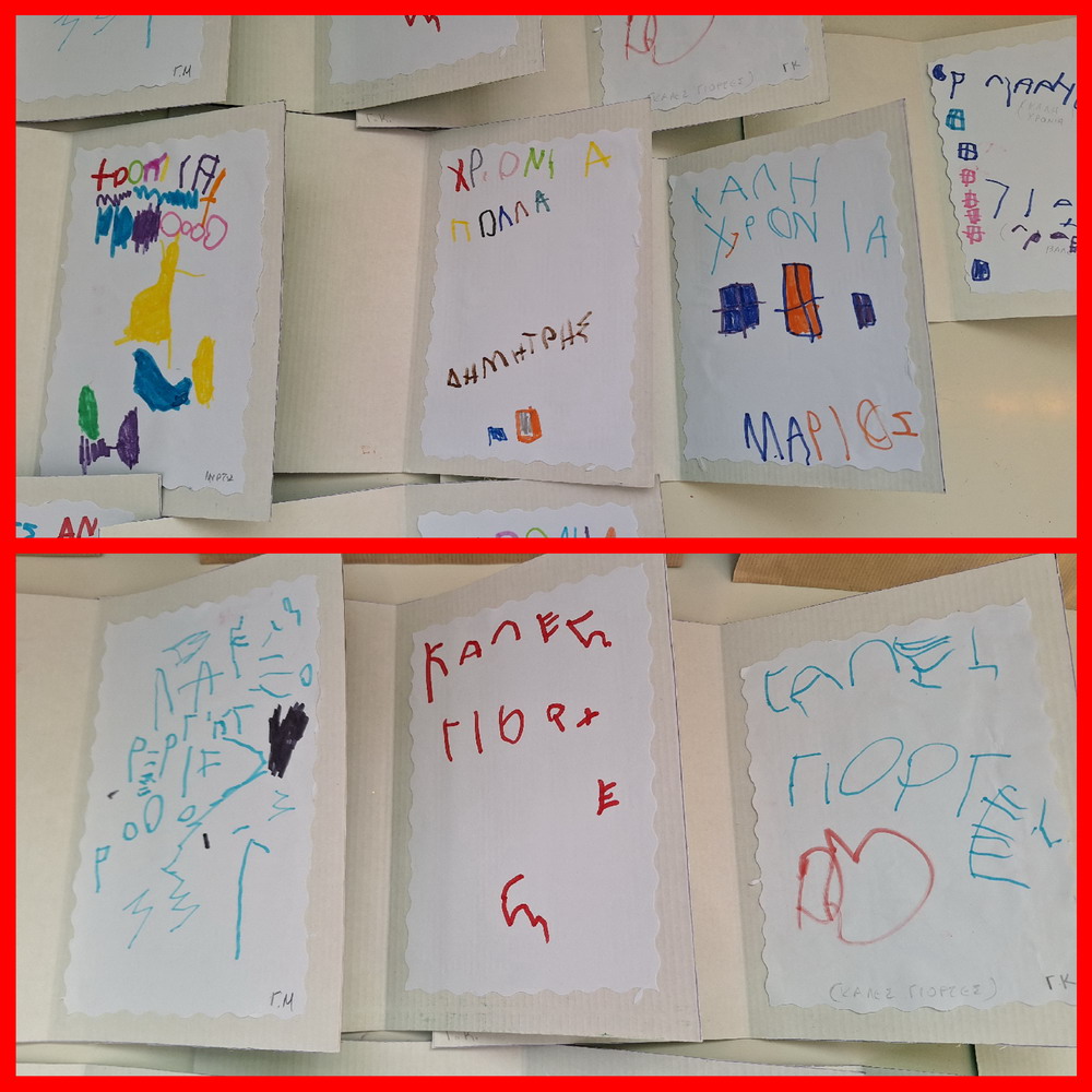 Συζητήσαμε και είπαμε για τις ευχές που ακούμε τις ημέρες αυτές. Τα νήπια έγραψαν τις δικές τους ευχές στην κάρτα που έφτιαξαν για τους γονείς τους.