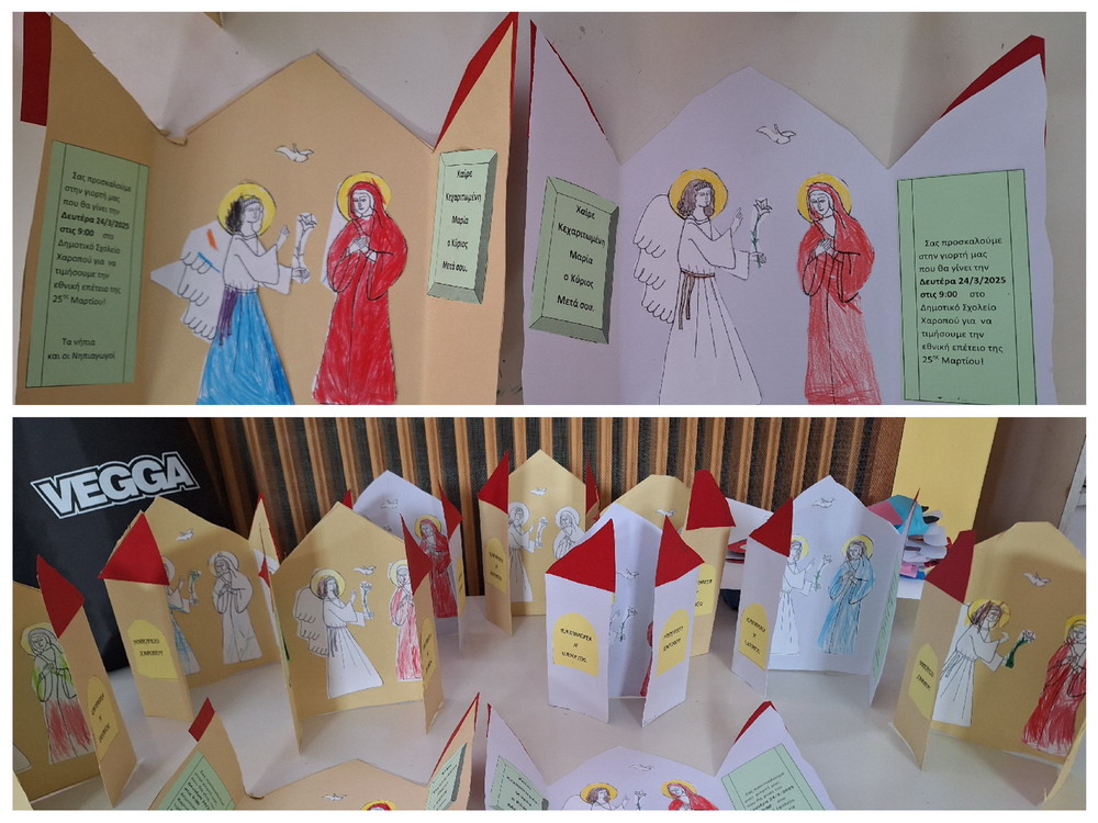 Η γιορτή που περιμένουμε να γιορτάσουμε είναι διπλή. Αναφερόμαστε στο γεγονός του Ευαγγελισμού και κατασκευάζουμε μια σχετική πρόσκληση.