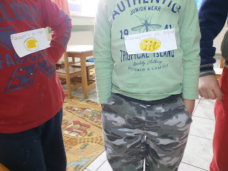 Μέσα απο διάφορες συζητήσεις προέκυψε η αναφορά στο αγαπημένο μας φαγητό. Έτσι, είπε το κάθε παιδί τι του αρέσει να τρώει, μετά το ζωγραφίσαμε σ’ ένα μικρό χαρτάκι και το κολλήσαμε πάνω μας. Απο εκείνη την στιγμή και για όλη την υπόλοιπη ημέρα, δε μας φώναζαν με το όνομα μας αλλά με το αγαπημένο μας φαγητό! Άρεσε πολύ η δραστηριότητα αυτή στα παιδιά και τους φάνηκε πολύ αστεία!