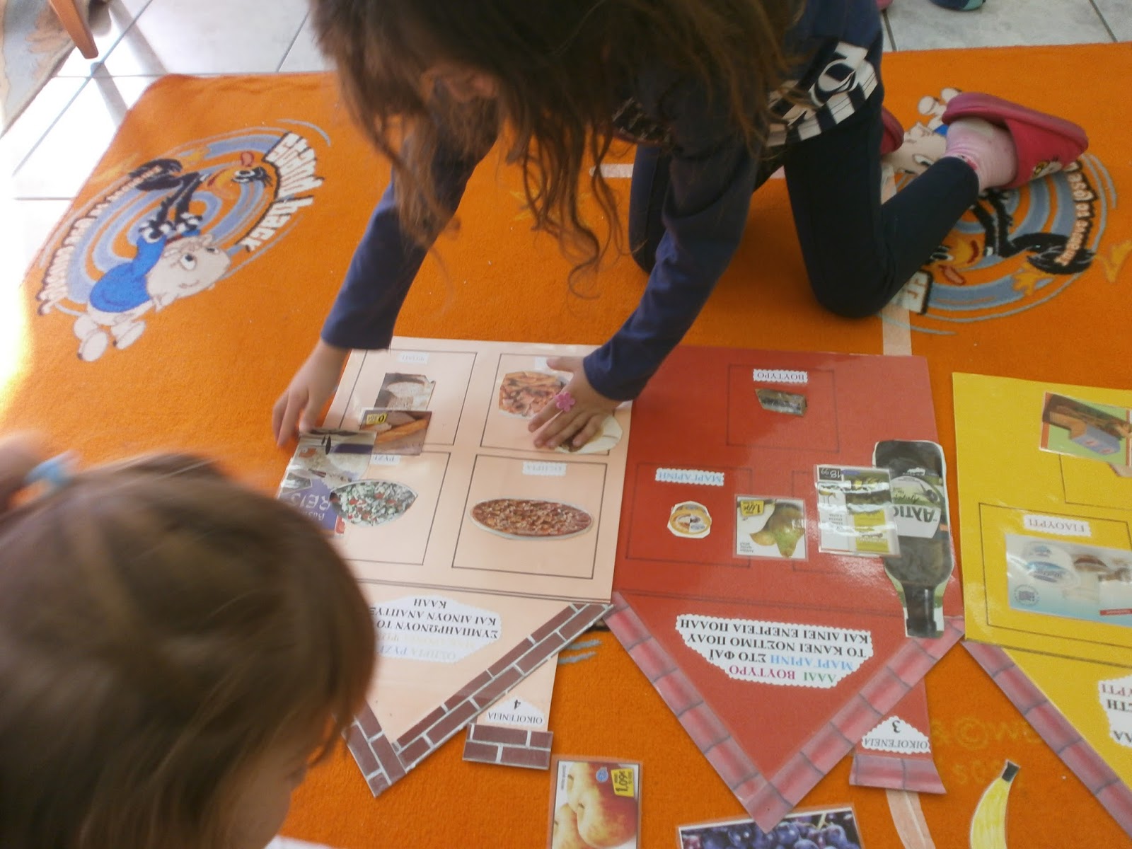 Έπειτα μελετήσαμε το παραμυθι “ο ωραίος Δαρείος”, που μας μιλάει για την υγειινή διατροφή, είδαμε εικόνες με διάφορα φρούτα και λαχανικά και φτιάξαμε μια ομαδική εργασία χωρίζοντας τις υγειινές με τις ανθυγειινές τροφές.